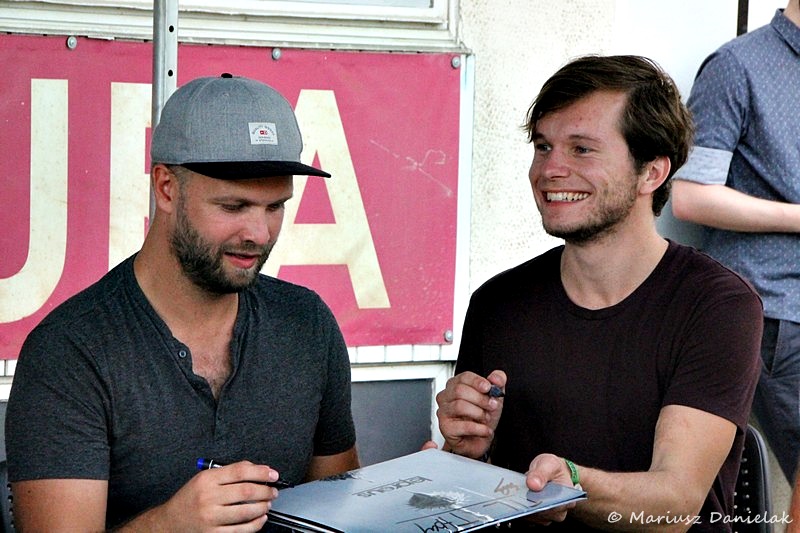 Tym bardziej, że Progresja dała radę. Utworzono sporej wielkości ogródek przed głównym wejściem do klubu, w którym pomieszczono food trucki (z cenami faktycznie dość europejskimi) oraz miejsce przeznaczone do Signing sessions. Nieco obaw przed festiwalem budził ewentualny brak klimatyzacji. Ale i na tym polu nie było najgorzej, bo postarano się o nawiew, no a poza tym na zewnątrz nie było jakichś tropikalnych upałów. Troszkę rozczarowywał dosyć skromny merch większości składów. No i niestety brakowało tym razem festiwalowej koszulki. Po świetnym, ubiegłorocznym wzorze mocno nastawiłem się na kolejny zakup do kolekcji i obszedłem się smakiem. Cóż, mogę się tylko domyślać, że być może miało to związek z tegorocznymi perturbacjami, które spadły na organizatorów.