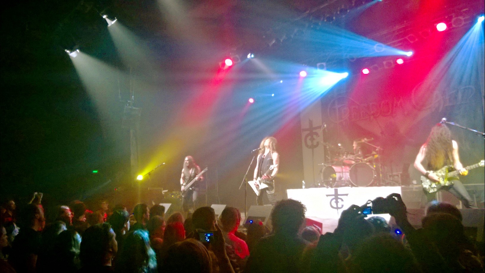 Kolejnym zespołem był Freedom Call, kapela z wiele dłuższym stażem i nawet z jakimiś hitami (okolice roku 2002). Nieśmiertelny lider, Chris Bay, już nie tak młody jak kiedyś, ale zmarszczki i siwizna nie przeszkadzają mu w szczerym i energetycznym podejściu do muzyki. Panowie odegrali set złożony z utworów, które ograli na wielu koncertach w tym i poprzednim roku. Nie było ani zaskoczenia, ani jakiegoś wybitnego performance'u. Prosty, melodyjny niemiecki heavy metal, pokroju Gamma Ray (ale zdecydowanie półkę, lub dwie, niżej). Pamiętać należy, że panowie musieli godnie zastąpić Sonata Arctica, niedoszła gwiazdę wieczoru, więc starali się podwójnie. Na koniec z uśmiechem zaśpiewałem jeszcze refren "Freedom Call", jedynego utworu jaki pamiętam jeszcze z czasów kiedy byłem gimnazjalnym kindermetalem (czyli dobre 15 lat temu).