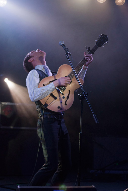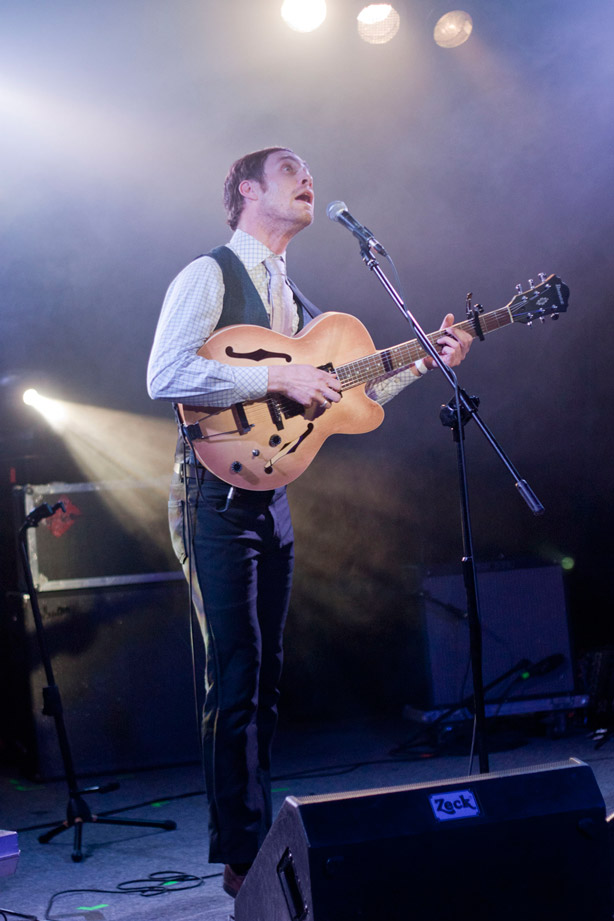 Po EatW kolejnym wykonawcą był Christian Fennesz - zasłużony artysta elektroniczny z Austrii, który bywał w naszym mieście już wielokrotnie, stąd jego występ nie zrobił na mnie tak świeżego wrażenia, lecz trzeba przyznać, że jako liryczno-noise'owy one-man-band jest on niezwykle sprawny i przekonywający. Weteran awangardy elektronicznej doskonale panuje nad swoimi zabawkami - źródłem dźwięków jest gitara jednak szereg urządzeń przekształca je w masywną, wielowarstwową falę energii. Momentami natężenie dźwięku jest tak duże, że możemy mówić o noisie. Muzyka Fennesza przyjemnie bujała wznosząc się i opadając w powolnym rytmie, ale też i nieco usypiała. W konsekwencji nie doczekałem ostatniego występu – postrockowego We Stood Like Kings. Podobno zagrali przyjemnie w co absolutnie wierzę.
