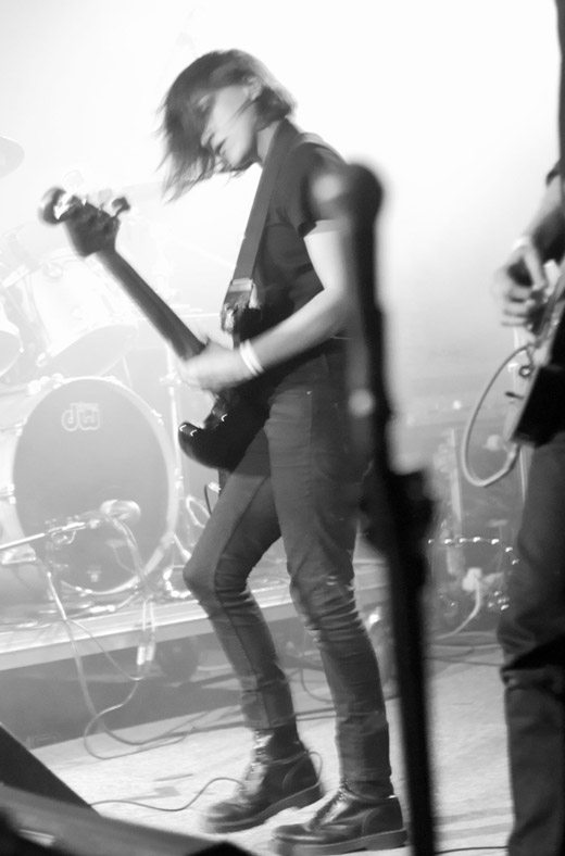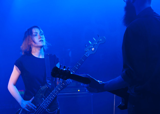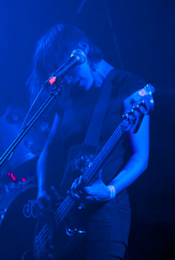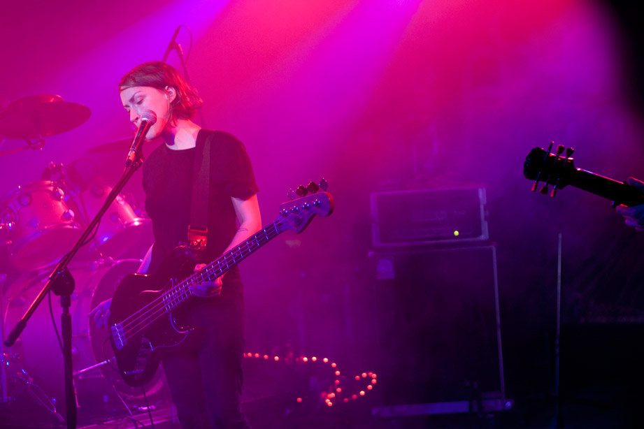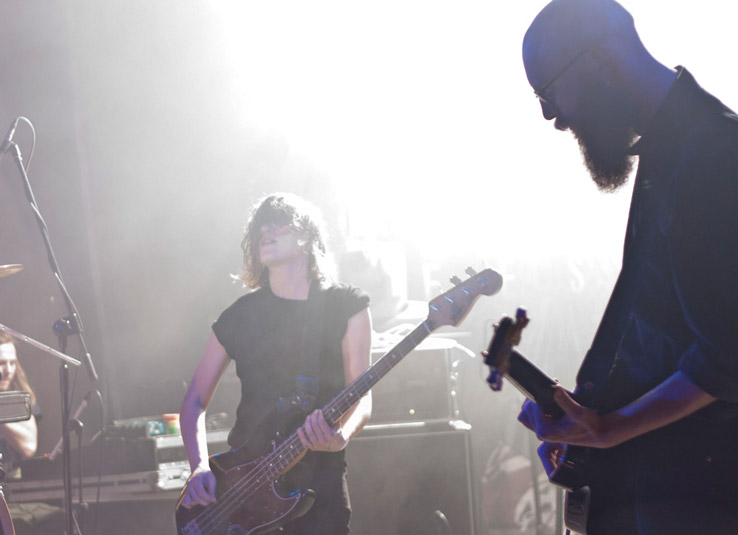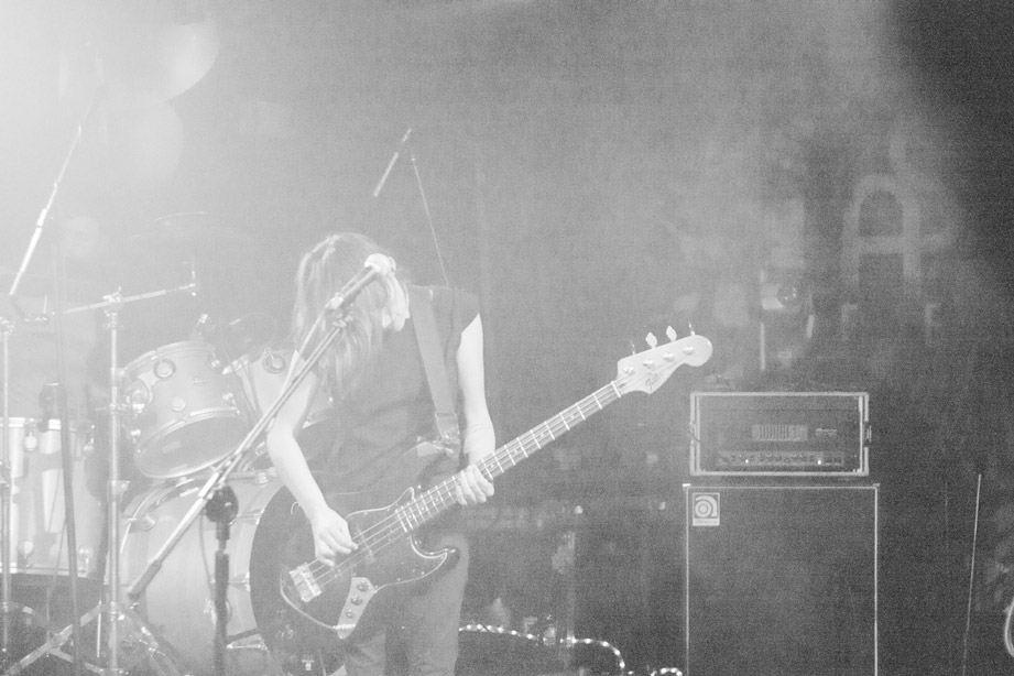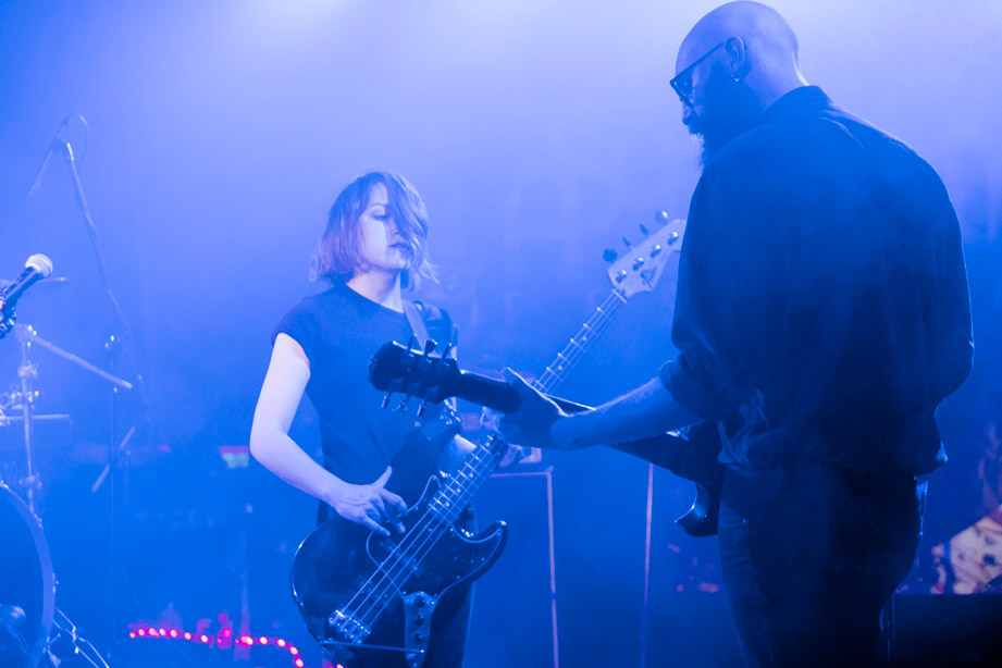 Z kolei brytyjski Esben and the Witch na braki w departamencie charyzmy nie mógł narzekać. Magnetyczną osobą była na scenie przede wszystkim Rachel Davies, ale i Thomas Fischer wypadł bardzo wyraziście, choć w całkowitym kontraście do frontmanki. Na ten zespół czekałem przede wszystkim i.. było warto. Kapelę tę szanowałem z racji udanej reinterpretacji zimnej fali i muzyki z kręgu 4AD, ale ich repertuar wydawał mi się nie dość oryginalny, szukający swojego własnego idiomu. Koncert pokazał że po wydaniu 4 płyt zespół okrzepł i właśnie ma to "coś swojego". Dodatkowo okazało się że dopiero na żywo można docenić ich setkę w pełni. Esben na koncercie gra mocno, rockowo, imponując zgraniem i pełnym skupienia zaangażowaniem. Filigranowa Rachel gra mocno na potężnie brzmiącym basie, przywołując tradycje brytyjskiego hardrocka - Budgie itp. Świetnie zagrywa się z perkusistą - Danielem Copemanem -- razem tworzą świetną sekcję rytmiczną - zgraną i konkretną. Ale Rachel to przede wszystkim wokal -- mocny, niosący, emocjonalny. Momenty śpiewania a capella skupiały cała uwagę widowni. Wokalistka jest autorką tekstów, wiec dostajemy przekaz autorski i nie ma wątpliwości ze Davies identyfikuje się z treścią songów, podaje je z pełnym zaangażowaniem, mówi o tym mimika i ekspresja. Teksty obracają się w kręgu mrocznych, niesamowitych wydarzeń, życia wewnętrznego, rytuałów i nawiązań literackich. Nieco złagodził się histeryczny ton songow, zastąpiony rockową werwą i tribalowym transem. Wydaje się że Davies z czasem coraz lepiej, śmielej i mocniej gra na basie, prosto, ale z bezbłędnym wyczuciem, serwujących czasami galopady w stylu Budgie i ciekawsze riffy, zamiast jednostajnego ostinatowego dumdumdum. Daniel Copeman na bębnach wtórował jej w sekcji rytmicznej w mocnym transowym stylu i trzeba przyznać że stanowili doskonale zgraną maszynę. Bębny były nagłośnione dość potężnie i to dodawało energii średniotempowym utworom. Typowy rytm stopa-werbel często bywał zastąpiony mocniejszym stopa-tom. Często bębny wpadały w długie zapamiętałe plemienne frazy. Copeman również obsługiwał okazjonalnie elektronikę, zwłaszcza pady z niskim basen, co dodawało muzyce nowoczesnej głębi i pulsu. Największa jednak robotę wykonuje w zespole gitarzysta Thomas Fischer. Wypełnia on przestrzeń harmoniczną teksturą, gęstą i przestrzenną, pełną ech i wibracji. Shoegaze'owe brzmienie tego muzyka, jest jednak jednocześnie bardzo liryczne, w ścianę dźwięku wpłata on misterne motywy trochę w stylu Robina Guthrie, choć zdecydowanie w estetyce lofi. Obok przejmującego wokalu Davies to właśnie gitara Thomasa buduje unikalny nastrój będący wizytówką i głównym atutem zespołu. Kapela zagrała wiele ze swoich flagowych utworów, (trudno mówić o hitach w przypadku tak niszowej formacji) -- Marching song, Jungle, the Fall of Glorieta Mountain, When That Head Splits, a także znakomity Dig Your Fingers In, do którego zespół nakręcił nastrojowy klip. Ten koncert był dla mnie punktem kulminacyjnym pierwszego dnia i, prawdę mówiąc, ostatecznie - całego festiwalu.