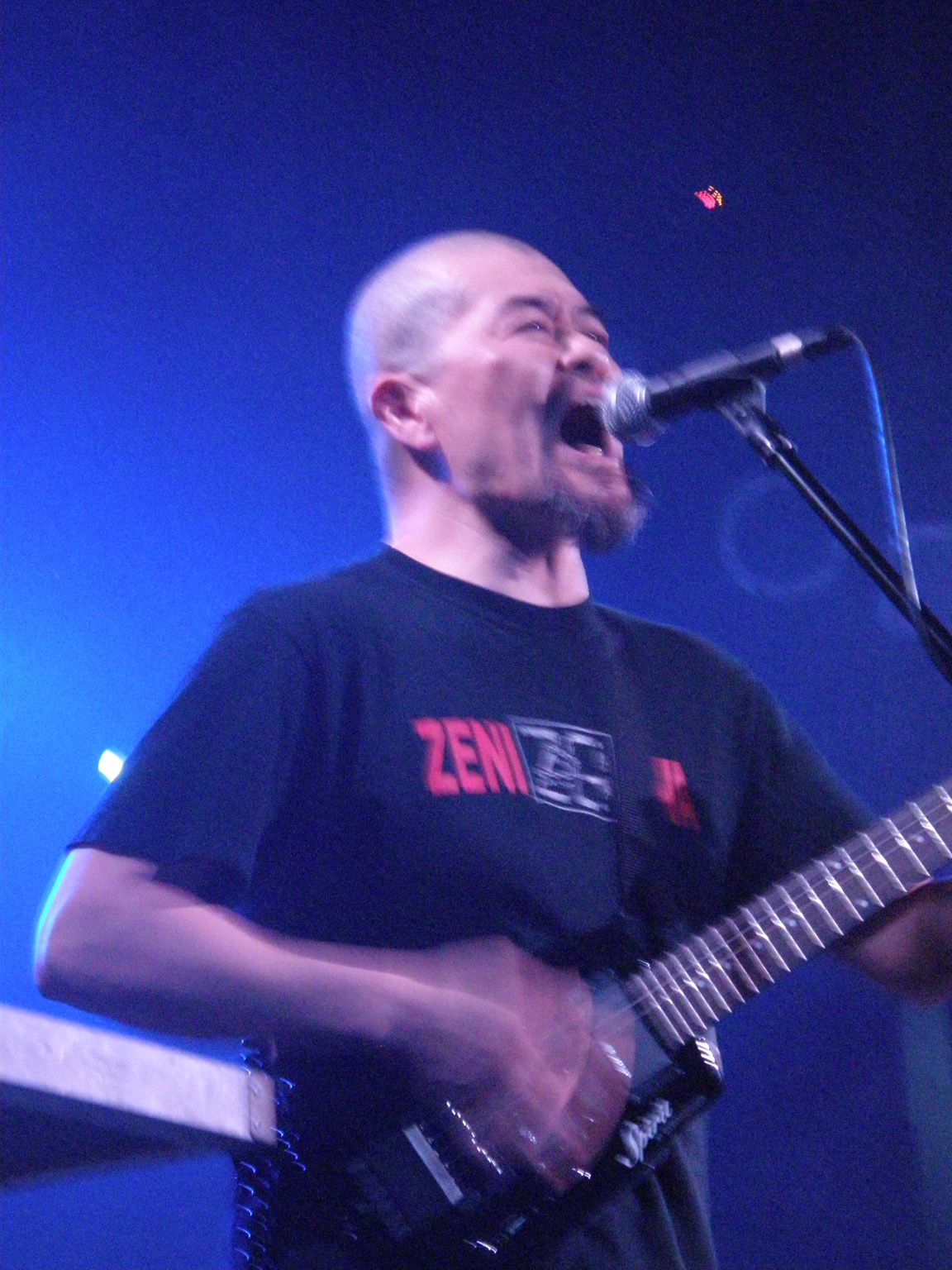 Kazuyuki Kishino jest pierwszoplanową postacią duetu – jego gitara przepuszczona przez parę poważnych zabawek potrafi stworzyć ścianę dźwięku, w której huczą najniższe basy, a jednocześnie rzężą warstwy kwaśnych sprzężeń, świstów i brumień, wszystko z piekielną dynamiką i potwornie głośno. Zarówno math-corowe połamańce grane z oszołamiającą precyzją, jak i powolne death metalowe kawały mięcha robią podobne wrażenie – pełne zawładnięcie odbiorcą. Z tym dzikim żywiołem sprzężony jest drugi – perkusyjny. Zasłużony awangardysta Tatsuya Yoshida jest arcymistrzem precyzji, szybkości, a zarazem inwencji będąc mniej widoczną, ale równowartościową połową zespołu. Tematyka „piosenek” Zeni Gevy jest równie transgresyjna – cierpienie, przemoc, okaleczenia, rozpacz, nic co przyjemne. Ciężko o tej muzyce pisać, trzeba jej doświadczyć, czego Wam życzę. Dla mnie nr 1 drugiego dnia festiwalu.