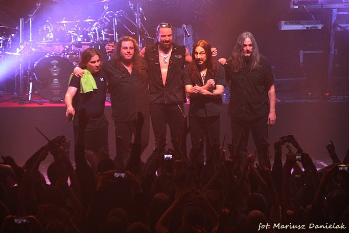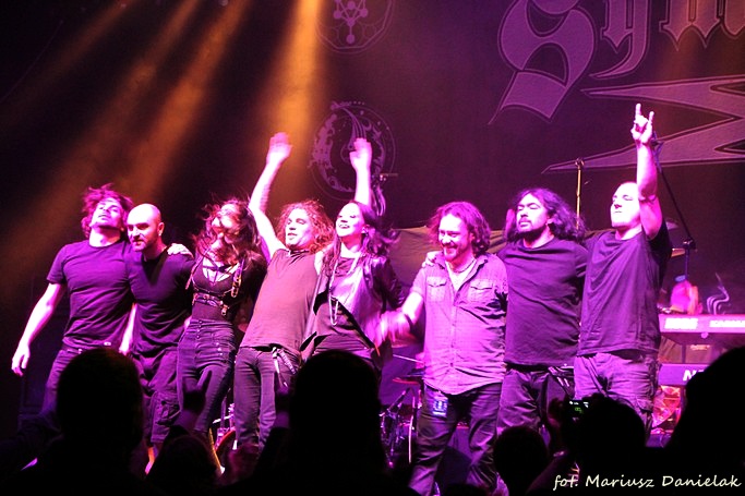Wyszli zgodnie z rozpiską, kwadrans przed 22, przy dźwiękach Overture rozpoczynających wspomniany krążek. Gry zaraz odpalili pędzący do przodu przebojowy Nevermore widomo było, że tego dnia jeńców brać nie będą. Dzieła zniszczenia dokonywali zresztą w kolejnych Underworld i Kiss of Fire dając nieco odpocząć dopiero w pięknym Without You. Na bębnach łoił niemiłosiernie Jason Rullo, malutki wzrostem, ale wielki siłą i serduchem do gry, klawiszowe, wzniosłe tła rzeźbił Michael Pinnella, a tuż przed jego podestem niskie częstotliwości generował Michael Lepond. Nie oni jednak byli bohaterami wieczoru. Palma pierwszeństwa należy się bowiem kapitalnemu Michaelowi Romeo, którego mocno misiowata sylwetka nijak się miała do, wystrzeliwanych przez niego z siłą karabinu maszynowego, gitarowych soczystych riffów. No i był jeszcze Russell Allen. Frontman kompletny, sceniczne zwierzę o potężnej sylwetce. W rockowym anturażu, ciemnych okularach, ze znacznym zarostem robił wrażenie. No ale przede wszystkim śpiewał. I to jak. To chyba obecnie najlepszy progmetalowy wokal na tym łez padole. Nie oszczędzając siebie odpalał kolejno Charon, To Hell and Back, In My Darkest Hour, Run With the Devil i magiczny Swan Song. Po nim Amerykanie opuścili Underworld i powrócili do nieco starszych rzeczy: instrumentalnego The Death of Balance/Lacrymosa z V: The New Mythology Suite oraz Out of the Ashes i Sea of Lies z The Divine Wings of Tragedy. Tym ostatnim zakończyli podstawowy set. Ogromne brawa i skandowanie nazwy zespołu przez liczną publikę rychło jednak przywołały grupę na scenę. Tam artyści odpalili jeszcze Set the World on Fire (The Lie of Lies) z Paradise Lost i spięli klamrą koncert sięgając ponownie do Underworld. Kończącym półtoragodzinny występ Legend Russell Allen w pięknych słowach oddał hołd Ronniemu Jamesowi Dio (przy okazji - nie wiem, czy Allenowi zdarza się tak co koncert, ale faktem jest, że publiczności pokadził, nazywając ją najlepszą na całej trasie). Cóż, koncert praktycznie bezbłędny. Witalność i energia muzyków imponowały. No… delikatnie można byłoby przyczepić się do dźwięku, ale to drobiazg. W końcu to kawał muzycznej, gęstej masy, nie dla panienek z dobrego domu. Trudno czasami wygenerować brzytwę, niczym w domowych słuchawkach. Zresztą, najważniejsze były emocje. A te były wielkie.
