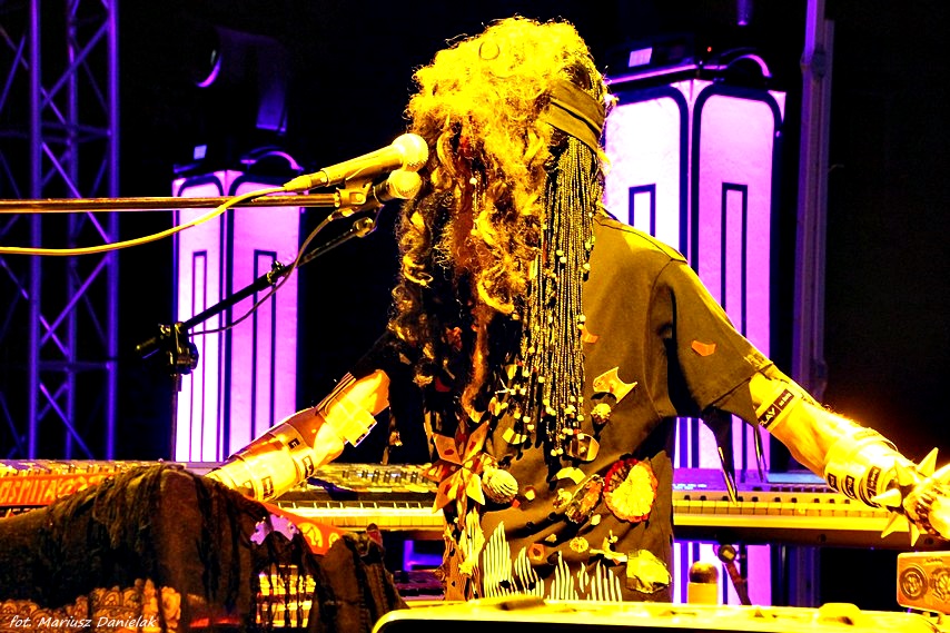 Najlepsze miało jednak dopiero nadejść wraz z występem jedynego zagranicznego artysty tegorocznego festiwalu – walijskiej Karnataki. I nadeszło. Gdy tylko muzycy rozpoczęli od Road To Cairo poprzeczka natychmiast poszła zdecydowanie wyżej. Rudowłosa Hayley Griffiths, okazała się nie tylko świetną wokalistką, ale przede wszystkim scenicznym wulkanem energii. Nie ukrywam, że przybyłem do Torunia głównie dla nich. I nie żałuję. Prawie dwugodzinny set zdominował ostatni, zagrany absolutnie w całości, piękny Secrets Of Angels. Wybrzmiały zatem między innymi urocze Fairytale Lies i Feels Like Home. Tej ostatniej kompozycji chyba miało nie być. Widząc jeszcze przed koncertem leżącą na scenie setlistę byłem nieco rozczarowany jej wykreśleniem. Być może muzykom tak bardzo spodobał się koncert, że postanowili zmienić zdanie. Nieważne, cały występ zakończyła ich wersja Zeppelinowego Kashmir zagrana z rockowym pazurem. Najlepszy występ festiwalu. Bez dwóch zdań. Po krótkiej przerwie kończył po nich dzień Władysław Komendarek. Ale to już była zupełnie inna liga. Kosmiczna. Niezwykły człowiek, artysta, samotny na scenie z okalającym go sprzętem. Ubrany nieziemsko, oddany każdemu generowanemu dźwiękowi. Były nowe kompozycje, hołdy dla zmarłych muzyków i… unoszący się nad wszystkimi hipnotyczny klimat.