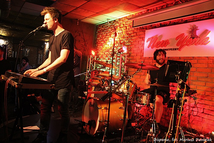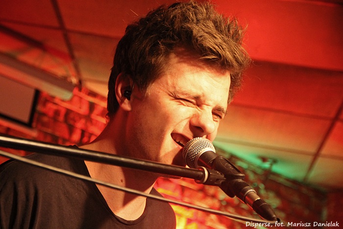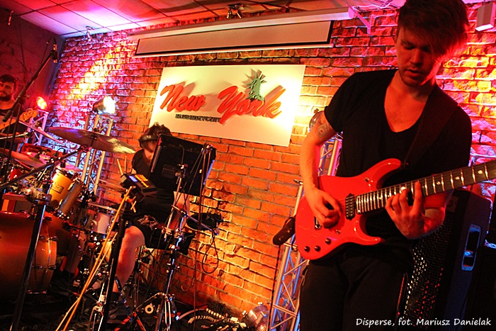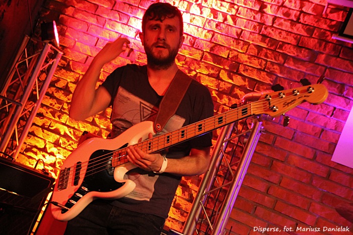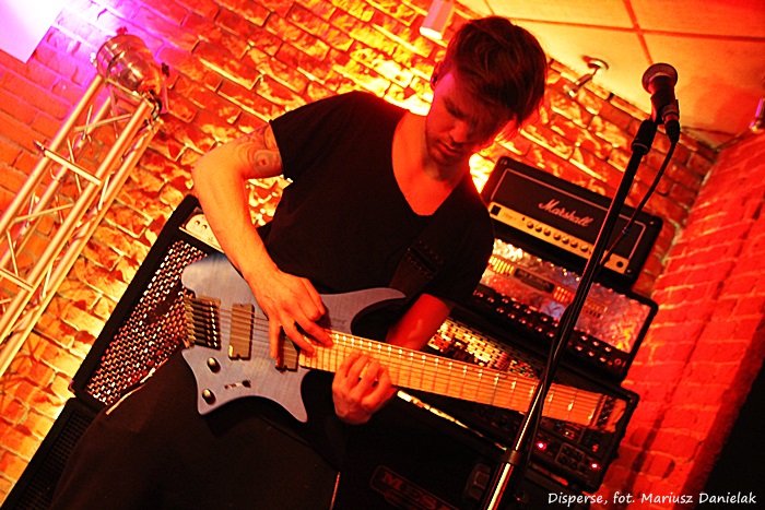Wieczór kończyła przybyła z Krakowa grupa Disperse. Młodym artystom realizującym swą muzyczną drogę, zdają się przyświecać dwie zasady. Po pierwsze, stawiają przede wszystkim na promocję poza granicami naszego kraju (wydaje ich zresztą Seasons Of Mist), po drugie, w prezentacji swoich dźwięków odrzucają pierwszy rozdział swojej kariery (kompletnie inny od obecnych dokonań zespołu album Journey Through the Hidden Gardens) i wykonują rzeczy z Living Mirrors i Foreword. Dobrze, że kwartet zdecydował się na promocję wydanego w lutym Foreword także i w Polsce na kilku koncertach, bo zainteresowanie ich niesztampową muzyką jest (co pokazał łódzki występ). Niewątpliwie, tak jak oni, w Polsce raczej nikt nie gra. Jest djentowo, matematycznie, mocno technicznie, z dźwiękowymi dysonansami. Ale co ciekawie, na ostatnim, świetnym albumie (z niego poleciały między innymi Stay, Tether, Sleeping Ivy, Neon, Gabriel, Kite), także bardzo melodyjnie i przystępnie. Spodobał się ten koncert zebranym, którzy tylko podczas występu Disperse opuścili stoliki i zaczęli oblegać scenę. Praktycznie każdy z muzyków zwracał uwagę ogromną sprawnością techniczną. Przy klawiszach i mikrofonie dosyć energetycznie prezentował się frontman Rafał Biernacki, wyraziste figury basowe kreował Bartosz Wilk a za nimi, z dużym czuciem, bogato grał na bębnach wiecznie uśmiechnięty Brytyjczyk Mike Malyan. No i wreszcie Jakub Żytecki, o którym już dziś mówi się jako o młodej gwieździe polskiej gitary. Faktycznie intrygował lekkością i techniczną biegłością, którą pokazywał na trzech zmienianych podczas koncertu „wiosłach”. Ciekawy wieczór z małymi mankamentami, do tego szkoda, że ze znacznymi czasowymi obsuwami.