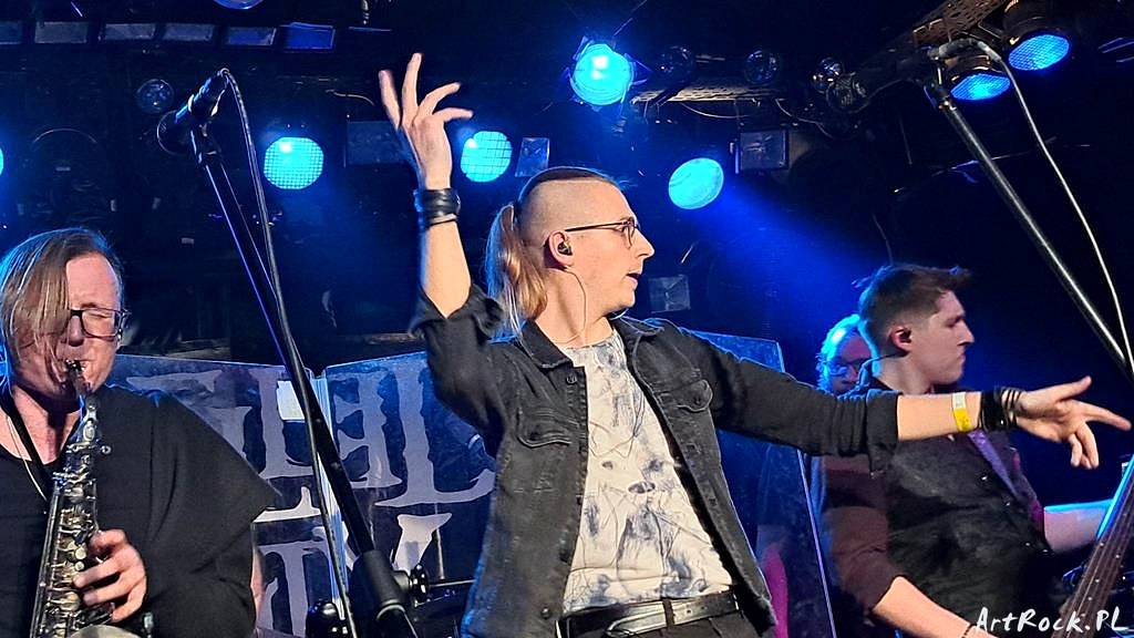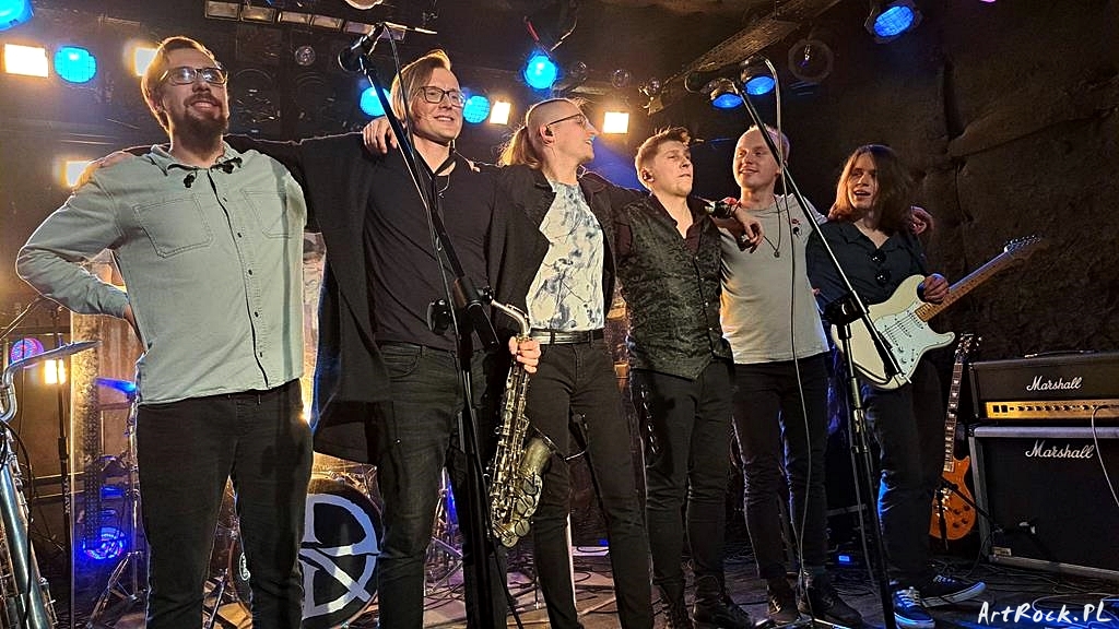 Gospodarze festiwalu, stołeczny Dispelled Reality, zagrali niewątpliwie najbardziej spektakularny set wieczoru. Widać, że przygotowali go z pietyzmem, czego wyrazem było choćby to, że jako jedyni umieścili, w tle sceny, pokaźnych rozmiarów logo grupy. Do tego, oglądała ich niemalże pełna sala pomieszczonego w podziemiach klubu. Przyznam otwarcie, że przed tym występem, znałem tylko ich wydaną w ubiegłym roku debiutancką, pięcioutworową EP-kę Świt i sporo sobie po tym koncercie obiecywałem. Nie spodziewałem się jednak, że sam gig da mi jeszcze więcej frajdy. Rzadko się zdarza, żeby zasłyszany podczas koncertu po raz pierwszy utwór wżarł się do mojej pamięci i wywoływał niemałą euforię. Im się to udało wraz z otwierającym całość Schematem, poprzedzonym wszakże budującym napięcie intro. Co ciekawe, ze wspomnianej EP-ki zagrali tylko dwie kompozycje: Obieżyświata i zaplanowaną na bis (niemniej wykrzyczaną przez część publiczności) doskonałą Ucztę. Nie wywoływało to jednak rozczarowania, bo choć trochę żałuję braku tytułowego Świtu, to wszystko rekompensowały przygotowane na WOŚP-owy koncert Nie dzielić, Konaj, me serce zagrane do wiersza Kazimierza Przerwy-Tetmajera oraz O tęsknocie i nadziei. Dobrym pomysłem było przygotowanie na ten koncert specjalnego „medleya”, w którym artyści pomieścili kilka artrockowych klasyków (Genesis, Rush, Tool, Dream Theater) spiętych Karmazynową klamrą w postaci 21st century schizoid man i Starless. Cóż, są młodzi a swoją muzykę tworzą z elementów dobrze znanych. A jednak mają to coś! Jest w tym pewna świeżość, szczerość i naturalność, którą lata temu widziałem w kultowym dziś, naszym rodzimym Abraxasie. To z pewnością nie ta stylistyka, niemniej autentyczność podobna. Ogromnym wyróżnikiem są u nich saksofonowe partie Jakuba Kotowskiego, założyciela grupy. Nie można wszak zapomnieć o wokaliście Łukaszu Jurkowskim śpiewającym polskie teksty dość wysokim, czasami pełnym emfazy głosem, wpasowującym go w szufladę hard’n’heavy, choć dla mnie bardziej w taką Niemenowską słowiańskość.