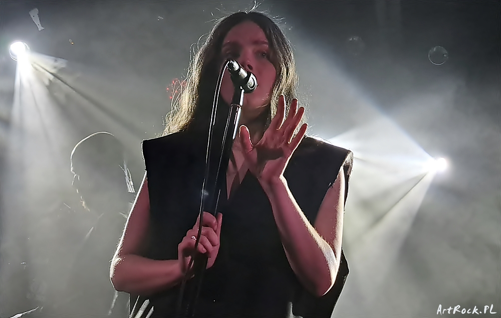 Przed Japończykami wystąpił niderlandzki GGGOLDDD, który w czterdziestominutowym secie pomieścił sześć utworów z wydanego w ubiegłym roku krążka This Shame Should Not Be Mine. Było mrocznie, gotycko, industrialnie i niezwykle hipnotycznie. Chwilami odhumanizowana muzyka [podkreślana dodatkowo sceniczną kreacją charyzmatycznej Mileny Evy (zdjęcie)], generowana bez tradycyjnych bębnów i gitary basowej, przykuwała uwagę.