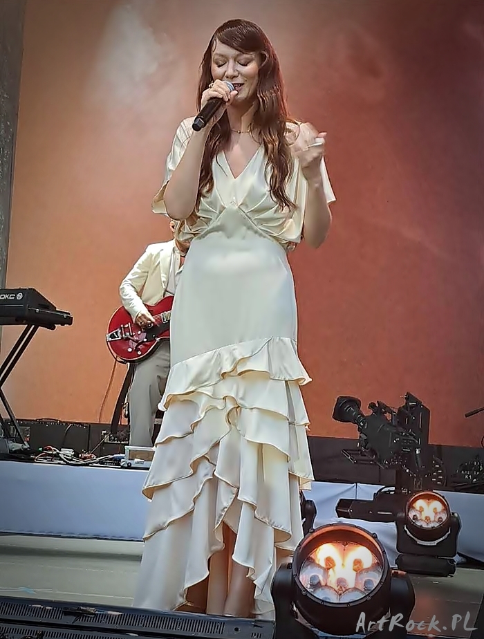Wspomniałem o gościach, którzy nadali wyjątkowości temu wydarzeniu. Grupie towarzyszyły podczas całego występu nie tylko trzy piękne, kobiece głosy, ale też artyści, którzy zaśpiewali na samym albumie. Szczególnie zaskoczył mnie Robert Gawliński, który swoim głosem dodał jakby jeszcze większej lekkości i swobody do i tak już ultraprzebojowego Dzień dobry. A byli jeszcze Dawid Tyszkowski i Natalia Szroeder, którzy w bardzo intymnych duetach z Belą Komoszyńską wykonali kolejno Miasto Warszawa i Świątynię. Nie wiem, czy kiedykolwiek ten materiał wybrzmi w całości, do tego prezentowany w takim scenicznym składzie. Delikatnie w to powątpiewam, dlatego wszystkich tych, którzy tego dnia do Parku Wolności zaszli, uważam za szczęściarzy. Także i siebie.