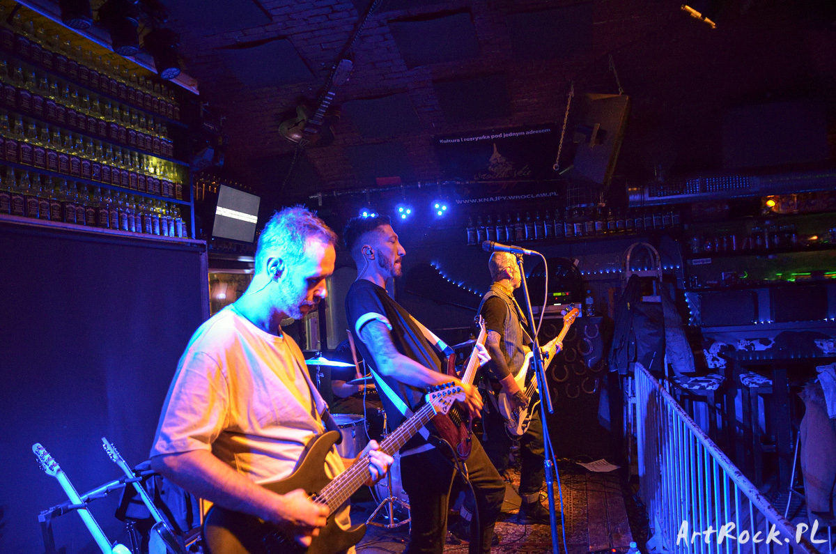 Drugi skład na wieczór to była warszawska formacja Konstelacje, która parę tygodni wcześniej miała okazję grać we Wrocławiu na trasie z zespołem Illusion i Flapjack w CK A2. To - jak piszą internety – szeroko pojęty gitarowy rock z elementami lat 90tych – ciężko jest właściwie ich gdzieś wsadzić poza inną formę niż dojrzały, mainstreamowy rock alternatywny. Melodie – jakbym gdzieś słyszał, głos - jakbym skądś go znał. I zagrali to bardzo przyzwoicie. Debiutancki krążek wypełniają utwory w bardziej mainstreamowym stylu, z lekką nutką alternatywnej chrypki u wokalisty Marka Rypińskiego. Za to nie było tu już karkołomnych solówek ale melodyjne utwory. Nie było wzniosłych wokaliz i zmian od pełnego śpiewu po metalowy wrzask ale świetnie i czysto zaśpiewany materiał, niczym zespół z 20 letnim stażem. I taka też jest ich płyta „Poza Horyzont”, która ukazała się we wrześniu ubiegłego roku. Na scenie oczywiście prócz wspomnianego Marka Rypińskiego na wokalu i gitarze, także Grzegorz Bińkowski na drugiej gitarze, Dominik Mądrachowski na basie oraz Jakub Wiśniewski na perkusji, a usłyszeliśmy Intro, Szorm, Burze i huraganowy wiatr, Droga, Letni, Najdłuższa noc w roku, We mgle, Grawitacje, Jak sen, Echo i Przed świtem.