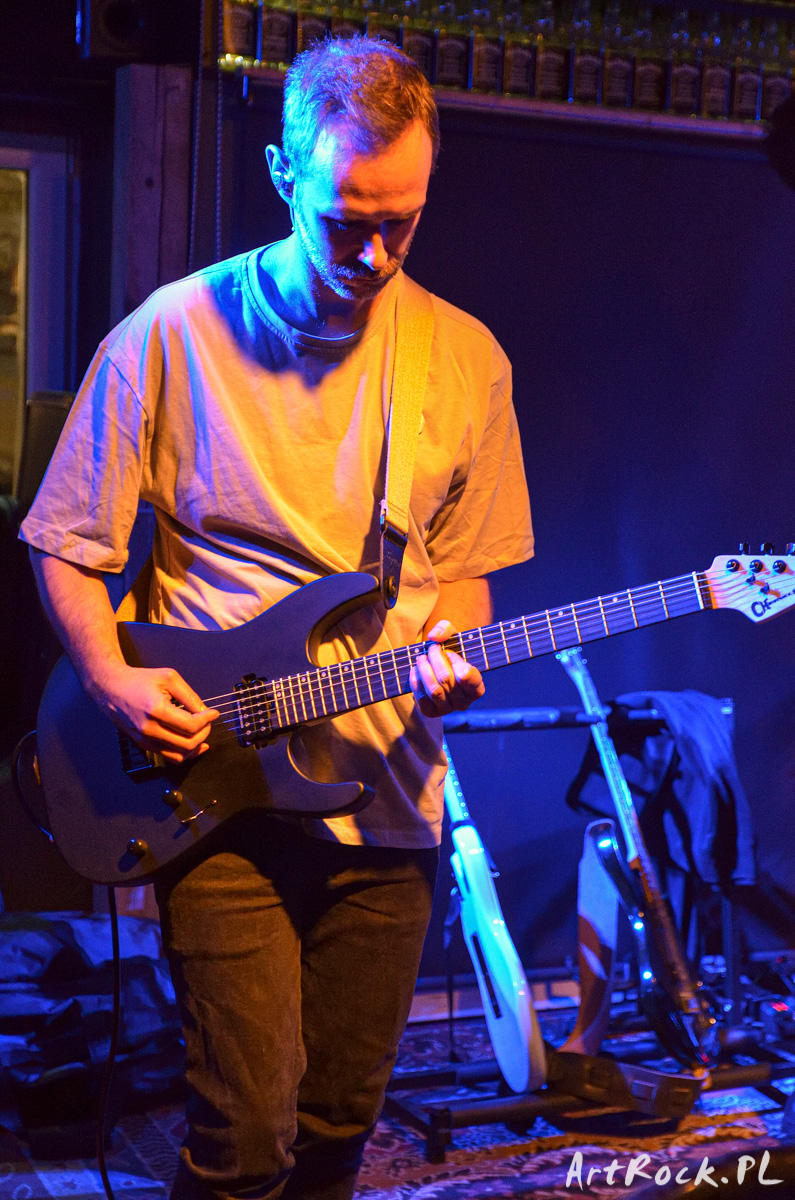 Mała scena z prowizorycznym płotkiem oddzielającym od widowni ledwo jest w stanie pomieścić bardziej rozbudowane instrumentalnie zespoły. Nie groziło to jednak gdańsko-świdnickiej (!) formacji Diatom. Trójmiejski skład muzyczny – Bartłomiej Sokołowski na instr. perkusyjnych, Marcin Szkiel na basie i instr. klawiszowych, Jakub („nie odróżniam górnego i dolnego śląska”) Kolan na gitarze są wspomagani przez pochodzącego ze Świdnicy wokalistę Michała Kulniewa, który dołączył do składu przed nagraniem ich drugiego krążka „Sól”. O samej muzyce nie będę się rozpisywał, więcej opisu można znaleźć w recenzjach debiutanckiego EP „Diatom” z 2019 r oraz pełnego wydawnictwa „Sól” z 2022 słowami kolegi Mariusza.