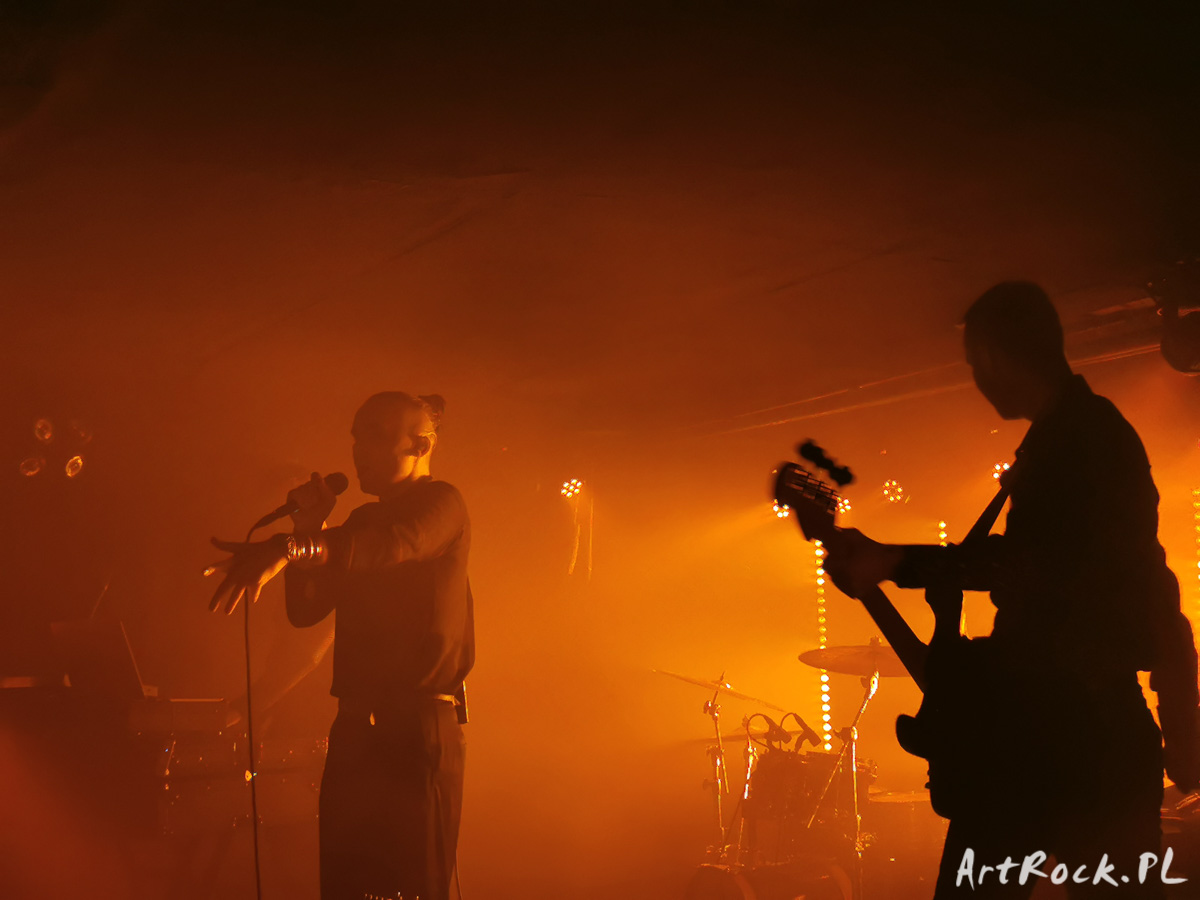 Album „Oko” do tej pory znany z tych dwóch singli z zapowiedzi, tu został odtworzony w całości. Ale jak oni fenomenalnie grają na żywo! Wspominałem, że tu młodość to pozory? Byli absolutnie stremowani, ale i fantastycznie przygotowani do scenicznego występu. Paweł Ostrowski ma wspaniały głos! Śpiewa czysto, szeroka skala od tenoru u góry nawet wykraczająca poza przyjętą umownie granicę, dobra emisja, świetna barwa – bardzo miły w odbiorze. I świetne dopasowany do tej muzyki. Teksty właściwie nie są typowymi dla piosenek. Są ambitne, pomimo pozornego charakteru utworów. To są niby krótkie, ocierające się o hity melodie ale w warstwie liryki jest już ambitnie, wzmocnione ekspresją wokalisty. Styl muzyczny zespołu – określenie „alternatywa” tu kompletnie nie pasuje. To, co tworzą nazwałbym retrowave 80’ inspirowanym brytyjskim synthpopem lat 80tych w stylu Vince’a Clarka/Yazoo/Depeche Mode, Jimmiego Sommerville, The Twins, Pet Shop Boys i sceną New Wave / New Romantic. Dla osób, które wychowały się na muzyce lat 80tych to sentymentalne zanurzenie się w dźwiękach z przeszłości. Jest znany beat, jest dużo fajnej elektroniki, jest świetna linia basu, jest melodia i jest niekonwencjonalny wokal.