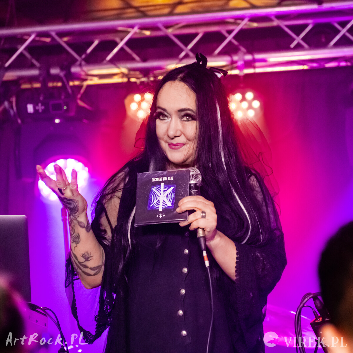 Zespół Decadent Fun Club podczas swoich setów odgrywa całość debiutanckiego albumu, nie inaczej było w Leśniczówce. Usłyszeliśmy zatem na żywo całą płytę, a że materiału jest sporo, więc Paveu Ostrovsky nie wdawał się w jakąś większą konferansjerkę. Co prawda czasem zdarzały się problemy techniczne - w połowie utworu odmówiła posłuszeństwa słuchawka odsłuchowa, ale byłem pod wrażeniem ogrania całego zespołu. Co zabawniejsze, dopiero podczas koncertu zwróciłem uwagę na brak podstawowego instrumentu rockowego - gitary solowej, co było następstwem zwrócenia uwagi na genialnie wręcz brzmienie basu i całej sekcji rytmicznej.