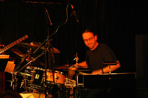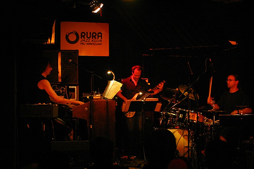 Hammond-Metal-Avant-Jazz-Core Trio. Dorzucając to tego określenia miejsce pochodzenia zespołu organizatorzy skutecznie zachęcili mnie do spędzenia wieczoru właśnie przy ulicy Łaziennej. Koncert zaplanowany na pól do dziewiątej, rozpoczął się z prawie trzydziestominutowym opóźnieniem. Scena przykuwała uwagę od początku, bogactwo instrumentarium (zwłaszcza organów i perkusji, wręcz przytłaczało. Zapowiedziani wyszli na scenę i zaczęli grać. Po sześćdziesięciu minutach przestali. I to całe podsumowanie koncertu.