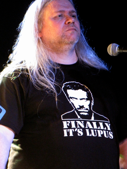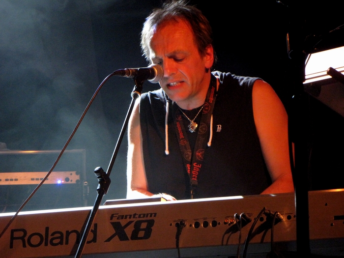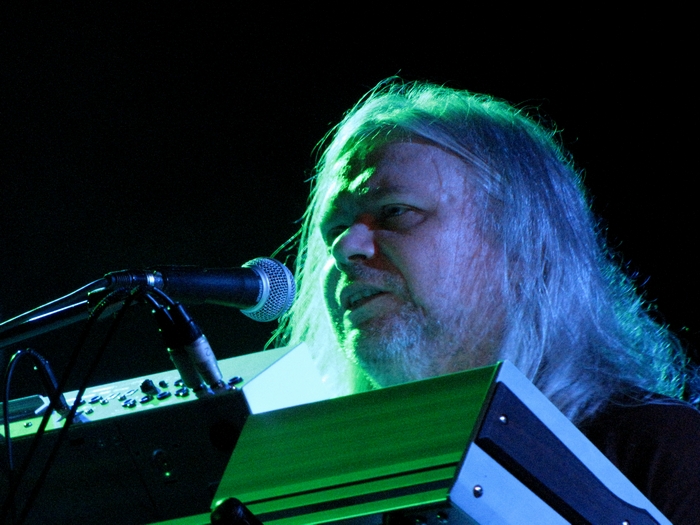 Wieczór rozpoczął, punktualnie o 20, wokalista innej progresywnej legendy, Twelfth Night – Andy Sears. Jego krótki, półgodzinny występ, wypełniły między innymi nagrania ze świeżutkiego, solowego albumu, Souvenir, oraz klasyki wspomnianej formacji, takie jak Fact And Fiction, czy wykrzyczany gdzieś z publiczności Love Song. Artysta zaprezentował bardzo kameralny występ akompaniując sobie na gitarze, instrumentach klawiszowych, bądź uruchamiając gotowe podkłady ze… swojego iPoda. Nie miał łatwego zadania; pozostawiony sam sobie, swoim entuzjazmem i dowcipem, starał się rozbudzić nieco jeszcze uśpioną i nieruchawą publiczność (dodatkowo rozgadane „tyły” mało uprzejmie psuły nastrój, który chciał stworzyć muzyk). Ale chyba się udało. Żegnały go ciepłe brawa coraz liczniej zebranych a on po występie z dużą przyjemnością podpisywał płyty i stawał do zdjęć z sympatykami jego dźwięków.