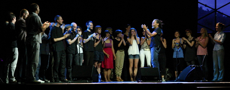 Drugi dzień święta wyśpiewał nam Bobby McFerrin – mistrz i klasa i w ogóle – bez napinania, bez wymuszania, bez elektroniki zahipnotyzował nabitą po brzegi halę Orbita. I bardzo dobrze się przy tym bawił, podobnie jak publiczność i to niemalże przez 2 godziny. Zaczął sam, ale bardzo szybko włączył moduł mniej lub bardziej zaawansowanej interakcji – publiczność powtarzała frazy, nuciła podkłady dla improwizacji, była żywym instrumentem na którym Bobby grał skacząc po scenie po wirtualnych klawiszach, a także była odpowiedzialna za melodię (jak w Bolerze Ravel'a). Artysta trzy razy zapraszał na scenę gości z widowni – najpierw zaprosił tych którzy lubią tańczyć, potem tych którzy wolą śpiewać w duetach, a na koniec tych którzy preferują śpiewanie chóralne.