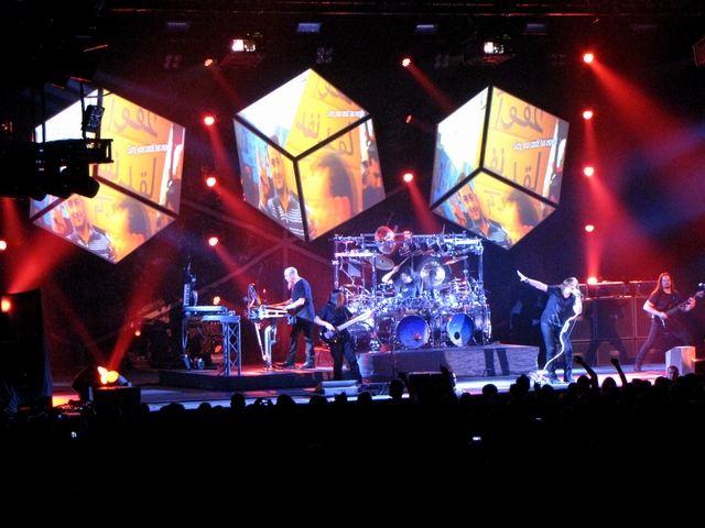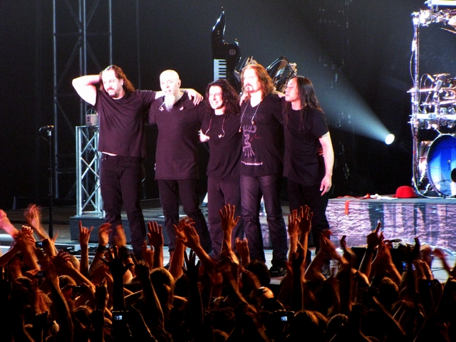 Tym razem artyści promowali swój ostatni krążek A Dramatic Turn Of Events (w lipcu, w Katowicach byli jeszcze przed jego wydaniem) i dlatego kompozycje z tego albumu – w liczbie sześciu - zdominowały setlistę. Artyści pominęli z niego tylko Lost Not Forgotten, This Is The Life i Far From Heaven, zatem miłośnicy ostatniego dzieła studyjnego formacji mogli czuć się usatysfakcjonowani. Tym bardziej, że zestaw uzupełniły ponownie numery z bogatej dyskografii Drimów, jak najstarszy tego wieczoru A Fortune In Lies z debiutu, zagrany tradycyjnie na bis Pull Me Under z Images And Words, czy 6.00 z kultowego Awake. A były jeszcze wyjątki z Metropolis Pt. 2: Scenes From A Memory, Six Degrees Of Inner Turbulence i Octavarium. Fajnym urozmaiceniem był akustyczny set, zaprezentowany w środku koncertu, na który złożyły się The Silent Man i Beneath The Surface odegrane przez siedzących na środku sceny, Petrucciego (z gitarą akustyczną), LaBriego oraz towarzyszącego im z boku na klawiszach Rudessa. Najpiękniej z całego tego zestawu wypadł mój faworyt – zagrany jako finał podstawowego gigu - Breaking All Illusions, z krystalicznie odegranym przez Petrucciego solo. A skoro przy solowych popisach jesteśmy – nowy nabytek zespołu, Mike Mangini, miał oczywiście swoje pięć minut, w którym po raz kolejny udowodnił, że dywagacje w temacie „Portnoy – Mangini” są już najzwyczajniej nudne i zbyteczne.