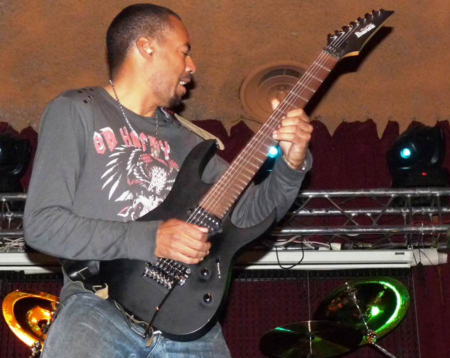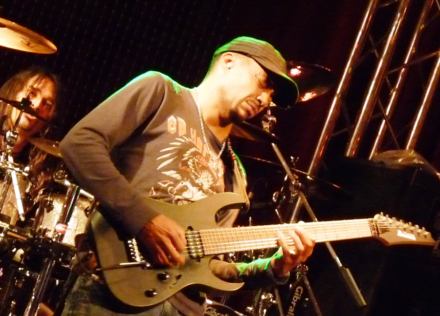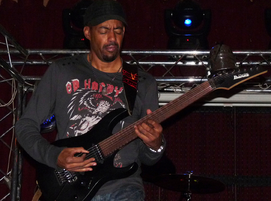 Była punkt 19., kiedy na scenę dziarsko wkroczył Daniel Piquê, 22-letni Brazylijczyk, niezwykle utalentowany gitarzysta, mający za sobą już współpracę między innymi z Mikiem Manginim, Billy’m Sheehanem i Timo Tolkkim oraz płytę Boo!. Występ jego niestety nie należał do udanych, by nie rzec, że był cienki. Dlaczego? No cóż, Piquê dwoił się i troił, ba nawet czworzył, gorliwie przy tym pracując twarzą, tak że bez dwóch zdań grał świetnie, szkopuł jednak w tym, że wystąpił samopas z towarzyszeniem jedynie puszczonego z playbacku podkładu, co niestety nie mogło wywrzeć pozytywnego wrażenia u odbiorców. Pewne jest, że warto mieć na oku tego sympatycznego młodzieńca, którego ścieżkę rozwoju będzie można śledzić polubiwszy jego profil na Facebooku, do którego odwiedzenia zgromadzonych zaprosił, toteż i ja w jego imieniu zapraszam, tym bardziej, że – jak zauważyłem – kilka fotek z piątkowego występu Piquê’a w Lizard Kingu już można tam obejrzeć.