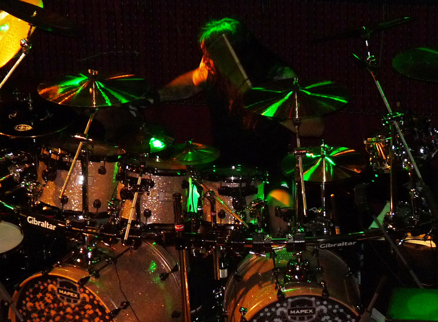 Aquiles Priester to znany ze współpracy z kapelami Angra i Hangar perkusista z Brazylii, który stał się lepiej rozpoznawalny po tym, jak Dream Theater zorganizowało po odejściu Mike’a Portnoy’a casting na nowego perkusistę. Dobrze pamiętam, że obejrzawszy dokument z tamtych przesłuchań uznałem, iż Priester wypadł w nich spośród wszystkich konkurentów najsłabiej. Nie wiem, czy był to wtedy rezultat stresu, słabego zapoznania się i ogrania z materiałem, czy po prostu miał Priester „zły” dzień, albowiem w ostatni piątek tak dosalał, jak nie dosalali w ubiegłym roku podczas koncertów w Katowicach i Krakowie ani Mike Mangini z Dream Theater, ani Marco Minnemann ze Stevenem Wilsonem, którzy w czasie wspomnianego castingu wypadli przecież o niebo lepiej. A trzeba przy tym zauważyć, że miał tym razem Priester partie nader karkołomne i zawiłe do odegrania. I poradził sobie wspaniale, zaś jego popisowa kilkuminutowa solówka w niczym nie ustępowała tej, jaką w lipcu zeszłego roku dał Mangini w Spodku. Naprawdę, pełen szacunek, facet jest prześwietnym instrumentalistą.