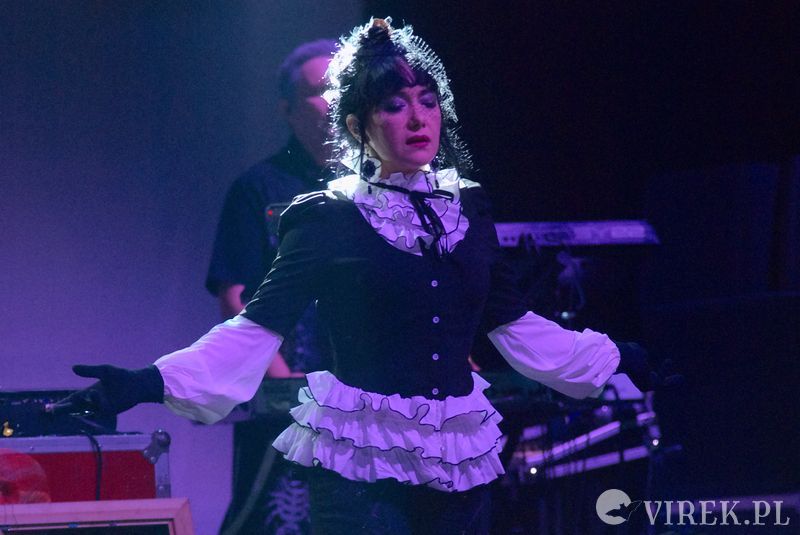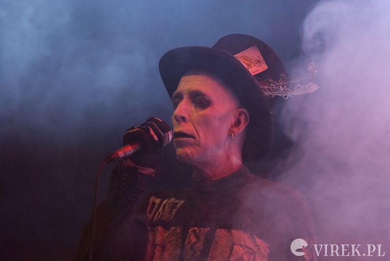 Merciful Nuns. Jeszcze jeden zespół którego oczekiwałem z ciekawością. Zespół to kolejny projekt założyciela Garden Of Delight, Artauda Setha. Bardzo mocno wzorują się na muzyce gotyckiej połowy lat osiemdziesiątych - moje pierwsze porównanie to inny zespół miłosiernych sióstr. Nuns także mają w składzie basistkę, a podkłady perkusyjne również wybija automat. Co prawda było na scenie znacznie mniej dymów, ale byli poprawnie nagłośnieni. (tak, wypominam ten koncert - Relacja z koncertu Sister Of Mercy w serwisie ArtRock.pl, 31.03.2009, klub Studio, Kraków). Występ urozmaicały wideo prezentacje na monitorach za zespołem.