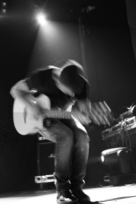 Bohaterowie wieczoru pojawili się na scenie zgodnie z planem, czyli około 20:30. Początek koncertu był skromny i stonowany. Rodrigo i Gabriela stanęli naprzeciwko siebie i rozpoczęli występ krótkim intro, które po chwili przeszło w całkowicie nowy utwór z niewydanej jeszcze płyty. Tuż po nim Rodrigo przywitał się z publicznością od razu przepraszając, że Polacy tak długo musieli czekać, aby zobaczyć zespół na żywo. Kolejnymi utworami były Diablo Rojo z płyty Rodrigo y Gabriela, oraz Savitri, Chac Mool i 11:11 z płyty 11:11. Mimo tego, że zostały one perfekcyjnie odegrane, można było odnieść wrażanie, że duet nie do końca złapał „wspólny język” na scenie. Z jednej strony na pewno było to spowodowane tym, że w Warszawie rozpoczynała się trasa koncertowa duetu, ale co ciekawe, można było też odnieść wrażenie, że mają oni po prostu lekką tremę.