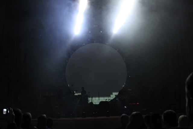 Wchodząc do Sali Kongresowej od razu można było się przekonać, że Ci, którzy twierdzą, że prawdziwi fani Pink Floyd na taki koncert nie pójdą, byli w błędzie. Mnogość koszulek i czapek związanych z ukochanym zespołem robiła wrażenie. W tak trudnym i dość „nadętym” miejscu jakim jest Sala Kongresowa, udało się już przed występem stworzyć atmosferę pełną napięcia i ekscytacji. Trzonem scenografii był wielki, okrągły ekran, a duże wrażenie robiło przygotowane, bogate instrumentarium.