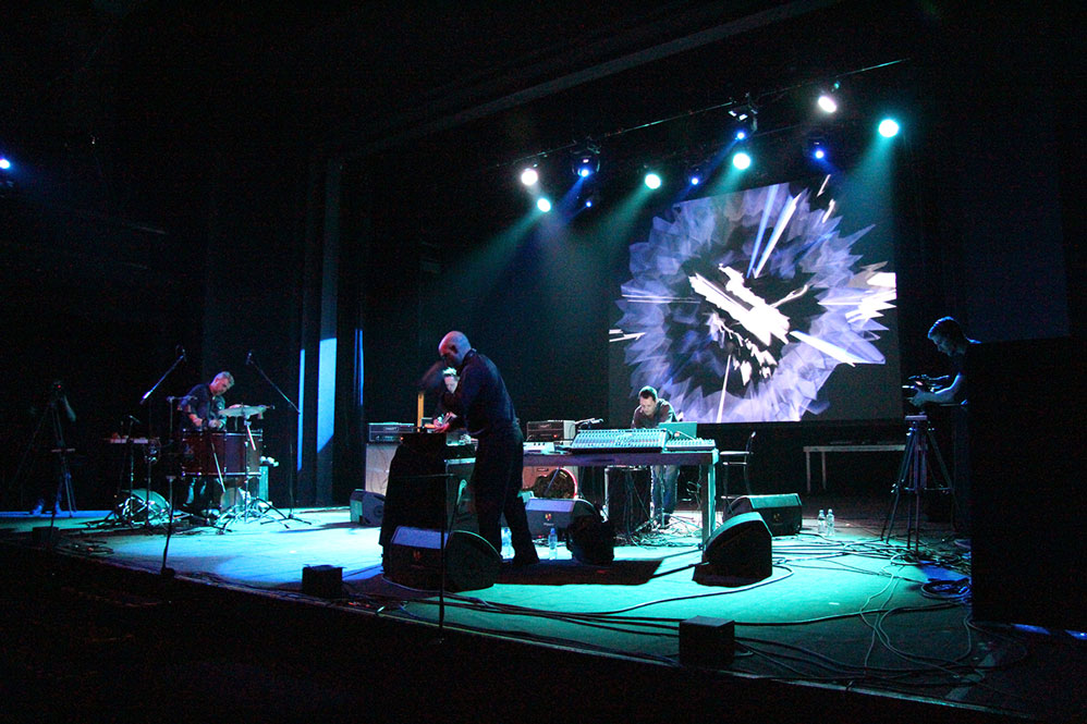 Tego dnia, czekał nas tylko jeden koncert, ale za to – finał. Tym razem, ta najludniejsza odmiana eklektikowych składów wzięła za temat ramowy „Solaris” – wybitną powieść science-fiction Stanisława Lema, dwukrotnie adaptowaną na film. Widać że osoby kształtujące program każdej Eklektik Session mają takie, niegłupie skądinąd, zamierzenie, żeby duży koncert finałowy zawsze osnuty był wokół motywów wziętych z innego kontekstu (w ostatnich czasach był koncert a propos zespołu Morphine, był a propos Zagubionej Autostrady Lyncha). Z tego osnucia wokół Solaris nie wybrnęli moim zdaniem zbyt akuratnie, bo właściwie tylko wizualizacje nawiązywały jakoś do powieści i sci-fi w ogólności. Kto zna Solaris nie zgodzi się sprowadzić powieść do stereotypowych obrazów typu „kosmonauta patrzy na planetę”, albo „kłębią się dziwne formy” (wizualizacje). Z kolei ten, kto powieści nie zna, niewiele się z tego spektaklu dowiedział. Ale też było to karkołomne zadanie. Muzyka czasami odlatywała, szybowała w przestrzeni i sugerowała tajemnicze zjawiska, ale odjęcie jej kosmicznej etykietki nic by nie zmieniło w odbiorze dzieła.