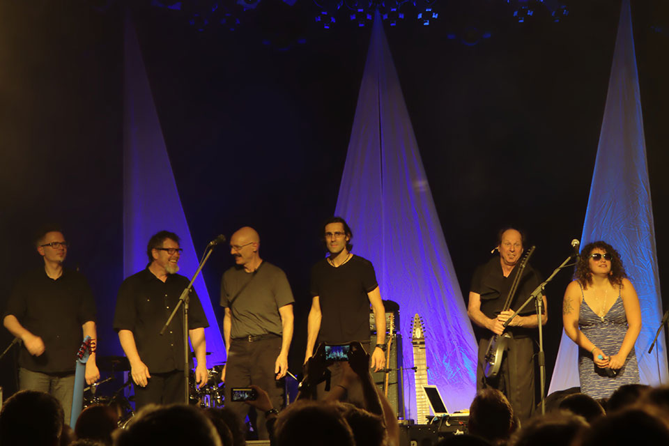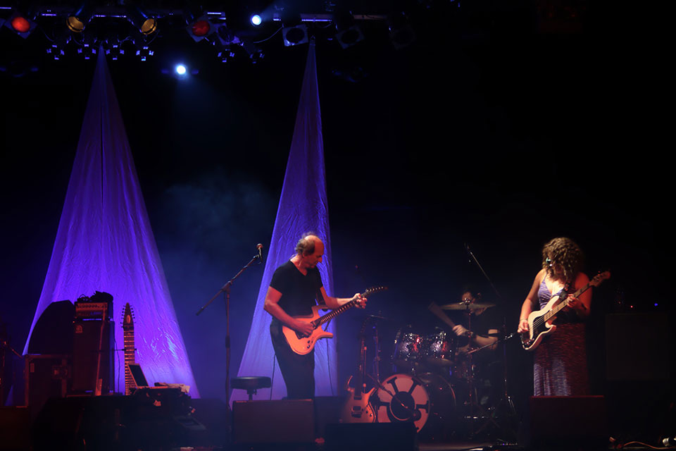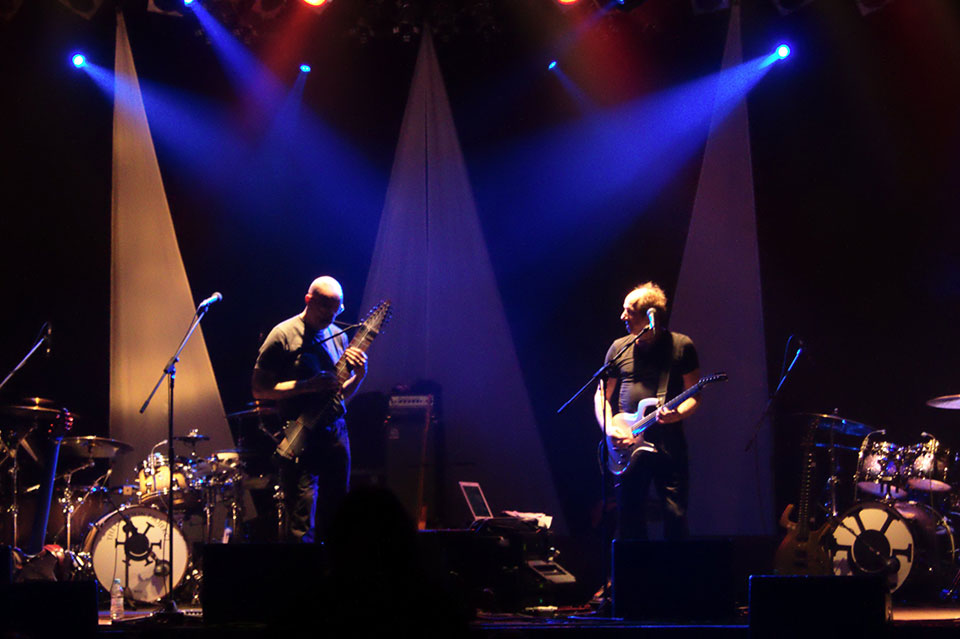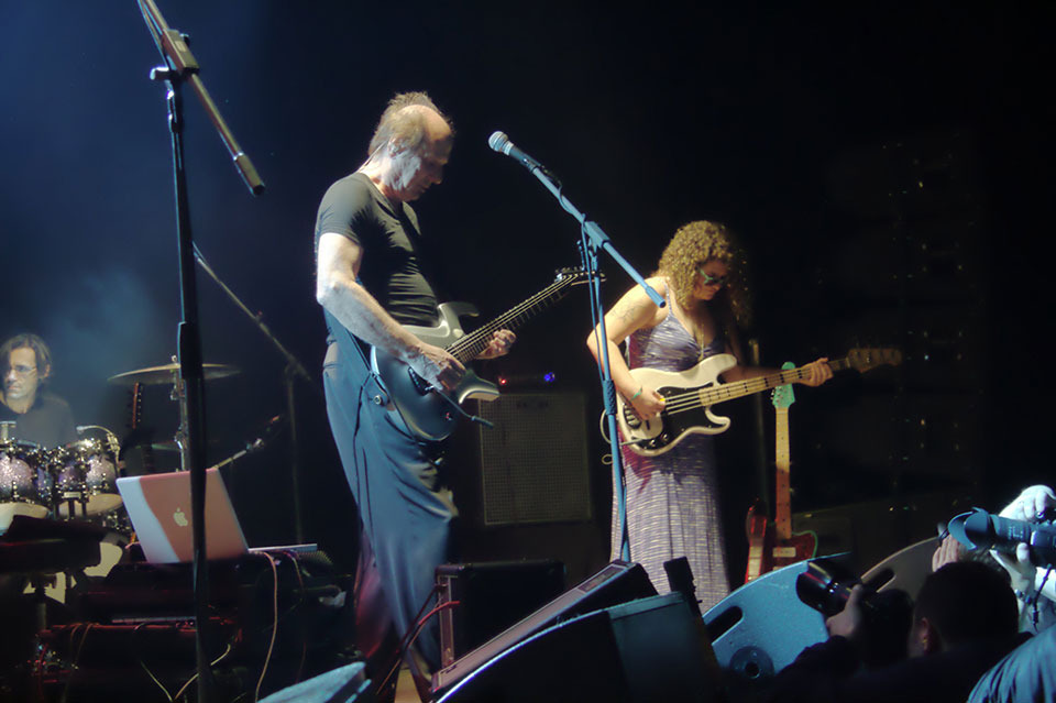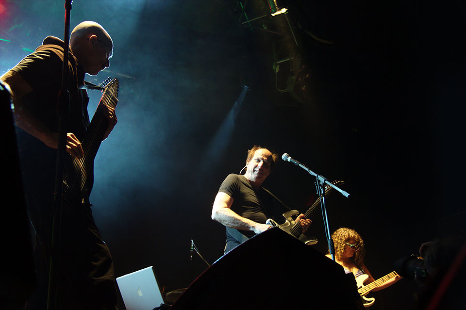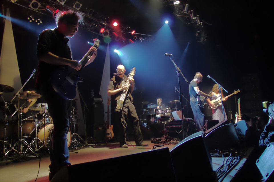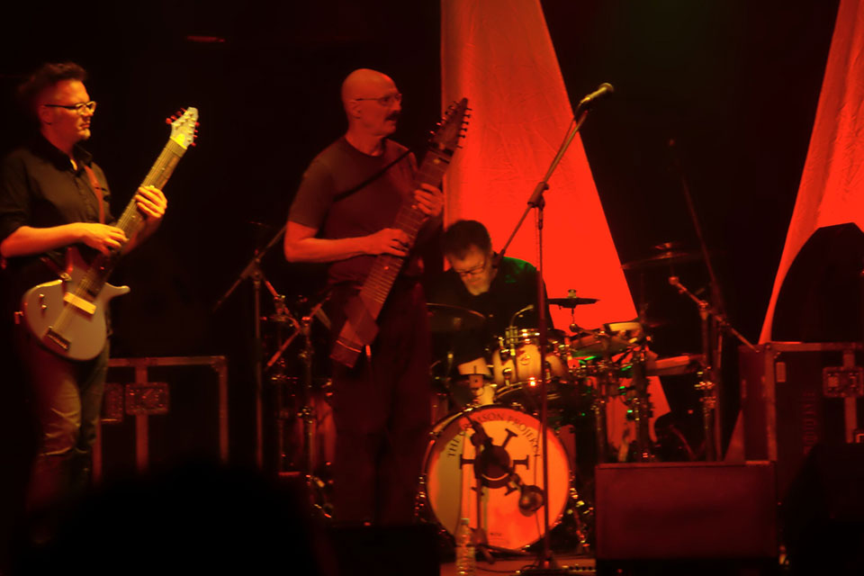 I to był błąd. Profesjonalistom wypada ufać, bo nawet najcięższe kwasy grane na żywo przez zawodowców wchodzą jak ambrozja, a ProjeKctowatość tego koncertu polegała wyłącznie na nieobecności Roberta Frippa. Odważni (a także nieświadomi) otrzymali regularny thebestowy koncert Crmisonów z Dinosaurem na początku, Red’em, Three of a Perfect Pair w środku i Thela Hun Ginjeet na bisy. ProjeKctowo na scenie zmieniały się konfiguracje, głównie grał cały sekstet, ale czasem na scenie zostawało samo (Power) trio Adriana Belew z Julie Slick i Tobias Ralph’em, czasem trio Stick Menów czyli Pat Matelotto, Tony Levin i Markus Reuter. Dwa numery zagrali Levin z Belew, zdarzył się Belew ze Stickmenami oraz Stickmeni z Belew bez Reuter. Dzięki rozmaitym konfiguracjom, ci (jakby nie patrzeć dojrzali) muzycy nie zmęczyli się zbyt szybko i grali dwie godziny czterdzieści minut. To bardzo dużo radości.