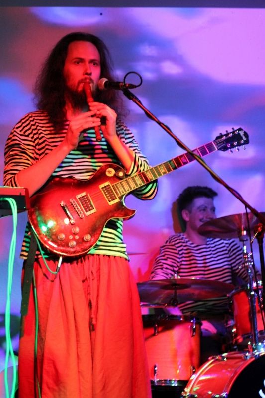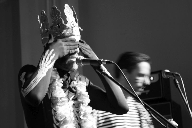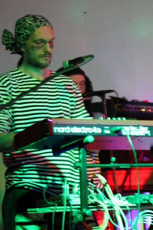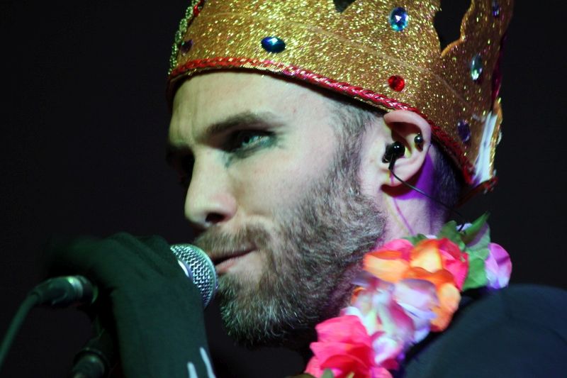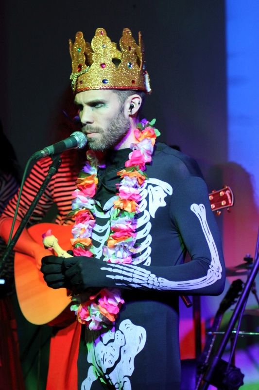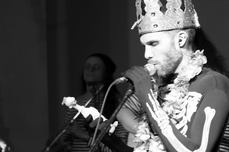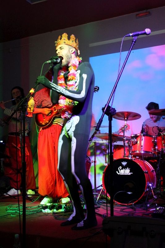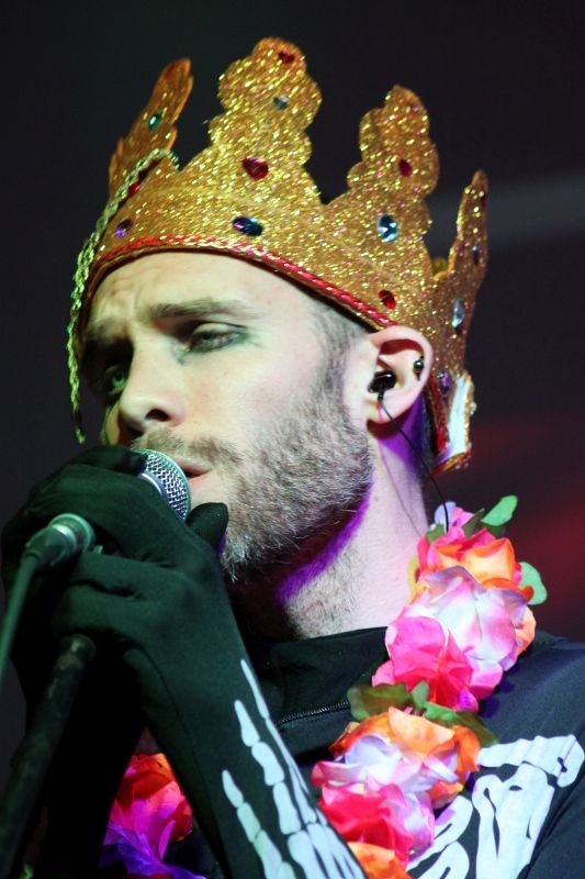 Koncert rozpoczął się punktualnie o 20:00. Panowie wkroczyli na scenę w pasiastych, „marynarskich” koszulkach pod przewodnictwem wokalisty Seana Palmera, który dla odmiany ubrał się w strój kościotrupa, a na głowę włożył koronę. Całość dopełniał niezwykły makijaż. Nie wiem, czy pomysł na image pochodził od Seana, który ma liczne doświadczenia związane z teatrem, czy od kogoś innego, ale efekt był wspaniały. Dodatkowym elementem wystroju, który świetnie wpisał się w muzykę były wizualizacje rzucane na ścianę za zespół.