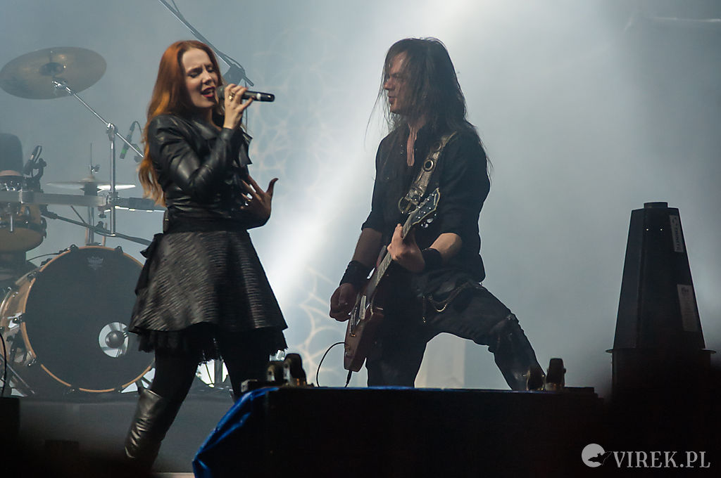 Czas na pierwszą gwiazdę. I już wiem pod czyj raider została przygotowana scena. Oświetleniowcy przetestowali chyba wszystkie scenariusze oświetlenia więc wiedziałem czego się spodziewać. I wyszli na scenę. Zespół Epica. Zagrali z rozmachem, był ogień, dymy, feria świateł. Klawiszowiec kręcący syntezatorem na obrotowej podstawie, muzycznie przekomarzający się z gitarzystą. Wokalistka biegająca po scenie w kozaczkach, skacząca na specjalnym podwyższeniu pośrodku sceny. Wszyscy kręcący grzywami, za wyjątkiem klawiszowca - łysiną ciężko kręcić. Piewszorzędny show, jednak na mnie nie robiący jakiegoś specjalnego wrażenia.