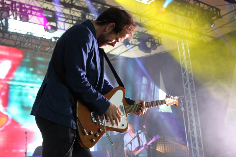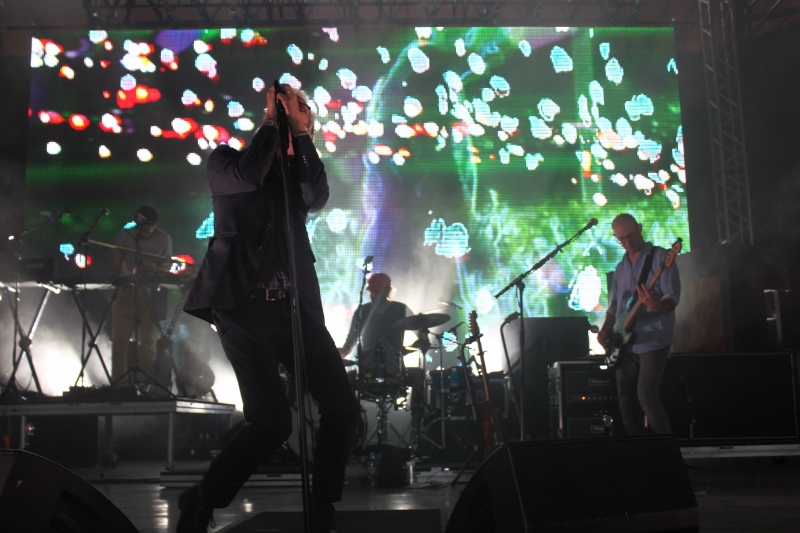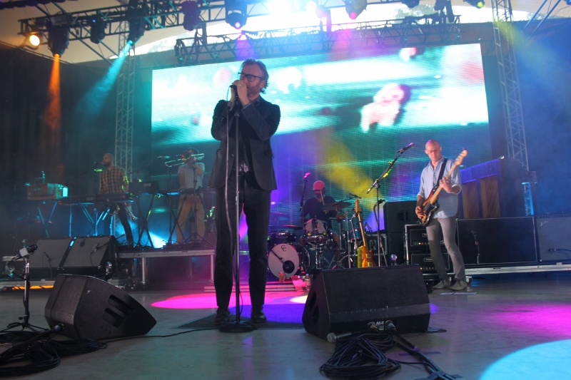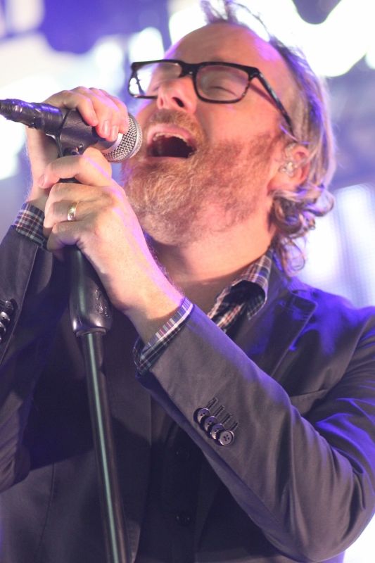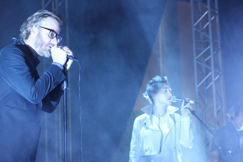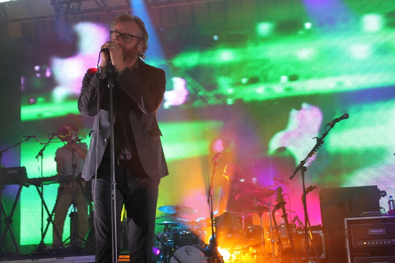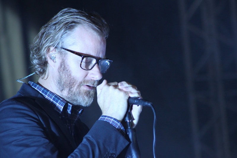 Sprawna organizacja pozwoliła na niewielką przerwę między występami i już o 20:00 na scenie rozbrzmiały pierwsze dźwięki The National i kolejni muzycy zaczęli pojawiać się na scenie (nie zabrakło oczywiście kieliszka z białym winem). Rozpoczęli od nowych „Don’t Swallow The Cup” i „I Should Live In Salt”. Przyznam, że mnie ostatnie dzieło Amerykanów ujęło świetnym prowadzeniem melodii, poetyką, hipnotycznym klimatem i umiejętnym łączeniem elementów tradycyjnych z subtelną, czysto (post)rockową alternatywą. Po pierwszych kilkunastu minutach było jednak wiadomo, że koncertowe aranże całkowicie zmieniają przestrzeń odbioru dobrze znanych utworów. Było zdecydowanie bardziej rockowo, z pazurem. Lekko psychodeliczne, czy stonowane klimaty pojawiały się (zdecydowanie zbyt) rzadko. Raził też nieco zbyt zachowawczy Matt na wokalu, który po tym, jak zawisnął nad mikrofonem i zaczął do niego śpiewać, nie wyrażał większych emocji przez dobre kilkadziesiąt minut. W odbiorze nie pomagało też nagłośnienie – akustycy mocno nadwyrężali słuch widzów zgromadzonych pod sceną i na ławkach amfiteatru, przez co momentami trudno było wyłapać instrumentalne smaczki, a melodia i sekcja rytmiczna zlewały się w nieprzyjemną pulpę dźwiękową. Na szczęście z każdą minutą było coraz lepiej – publiczność reagowała bardziej entuzjastycznie, The National nabierali odwagi – solówki były bardziej ogniste, sekcja rytmiczna wyczyniała cuda, a nawet Matt zaczął bardziej szaleć na wokalu, a nawet biegać wśród publiczności. W efekcie druga część koncertu była już genialnym popisem umiejętności zespołu i zarazem potwierdzeniem, że widzimy na scenie nie przypadkowy „inide band”, a rasową kapelę, która wyznacza kierunek, a nie podąża wytartymi ścieżkami. Momentami było naprawdę pięknie, a chwilami surowo, brutalnie i zadziornie.