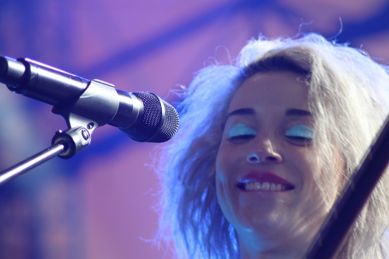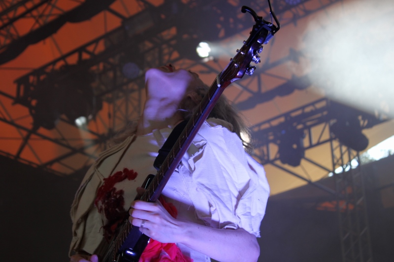 Organizatorzy zaprosili Amerykanów do Parku Sowińskiego. Przyznam, że miałem przyjemność po raz pierwszy od ponad 10 lat uczestniczyć w koncercie organizowanym w tym właśnie miejscu. Sympatyczny, niewielki amfiteatr pośród drzew zapewnił doskonałą atmosferę i otoczenie wizualne do zaplanowanych na ten dzień koncertów. Jako pierwsza, punktualnie o 19:00 na scenę wkroczyła artystka nie mniejszego kalibru niż The National. Zjawiskowa St.Vincent (która ma za sobą między innymi wyśmienity album nagrany z Davidem Byrnem) zaprezentowała półgodzinny set wypełniony alternatywnym popem najwyższej próby. Być może nie jest to muzyka, która porywa tłumy, ale myślę, że każdy uczestnik koncertu przyzna mi rację, że solówki gitarowe i głos St.Vincent były prawdziwą ozdobą wieczoru.