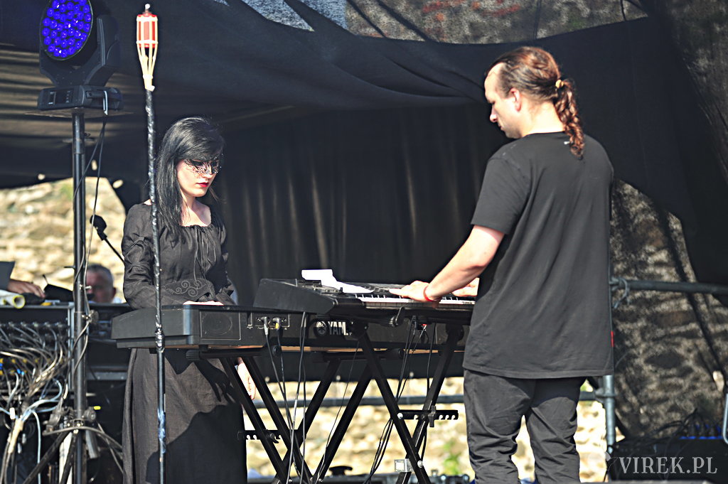 Lecz napiszę jeszcze o gwieździe wieczoru. Deine Lakaien tym razem zagrali w pełni elektroniczny koncert, co nie znaczy że utwory były odegrane jak z płyty. Ernst Horn miał do pomocy specjalistę od syntezatorowych pokręteł by w pełni oddać bogactwo muzyki zespołu.