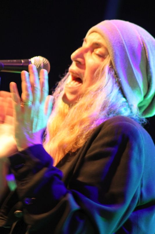 Park na Woli jest całkiem sympatycznym miejscem. Dużo zieleni i przestrzeń sprawiają, że naprawdę miło spędza się tam czas. W dniu koncertu Patti atmosfera także dopisała, a jej symbolem niech będzie radosny Kevin Aiston, który zarządzał wejściami na jednej z bramek (to nie żart, facet znany z „Europa da się lubić” pracuje jako ochroniarz). Około godziny 20:00, na kilkanaście minut przed rozpoczęciem koncertu, prawie wszystkie miejsca były już zajęte, a w powietrzu unosiła się atmosfera niecierpliwego wyczekiwania. Chwilę później, gdy na scenę wkroczyła gwiazda wieczoru w towarzystwie zespołu, rozległy się gromkie oklaski, a przy pierwszych dźwiękach „Dancing Barefoot” rozentuzjazmowana publiczność wstała z miejsc. Nie minęło pięć minut, gdy okazało się, że rozstawienie krzesełek na płycie było błędem. Nienękany przez ochroniarzy tłumek wstał z dalszych rzędów i przedarł się pod scenę. Tuż przed „Free Money” organizatorzy podjęli próbę „wypędzenia” ludzi spod sceny, co stało się pretekstem do pierwszego siarczystego przekleństwa z ust Patti, która nie dopuściła do odebrania jej radośnie podrygujących przed nią fanów. Cóż, całkowicie ją rozumiem, a tym, którzy kupili najdroższe miejsca w pierwszych rzędach szczerze współczuję. Warto podkreślić, że przez cały koncert artystka utrzymywała doskonały kontakt z publicznością opowiadając historie ze swojego życia, zachęcając do klaskania, czy przybijając piątki.