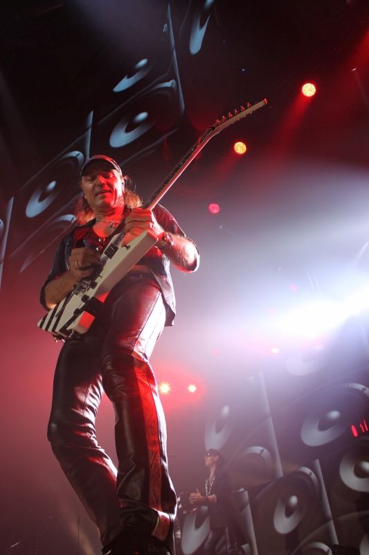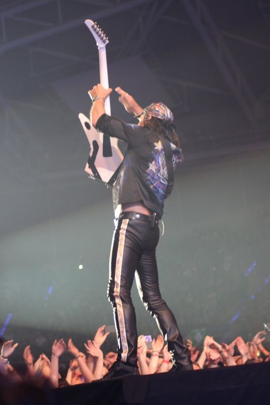 Po kilkudziesięciu minutach solidnego grania wszyscy muzycy udali się na kraniec „wybiegu” i oczarowali publiczność trzema numerami akustycznymi (z odśpiewanym przez publiczność „Send Me an Angel” na koniec, który został niejako domknięty jedną z najpopularniejszych power ballad w historii – „Wind Of Change”). Wielkiej tajemnicy nie zdradzę jeśli powiem, że spora część fanów zespołu ma tego kawałka dość, ale na szczęście tym razem zabrzmiał on naprawdę dobrze – bez zbędnego patosu, solidnie i z wyczuciem.