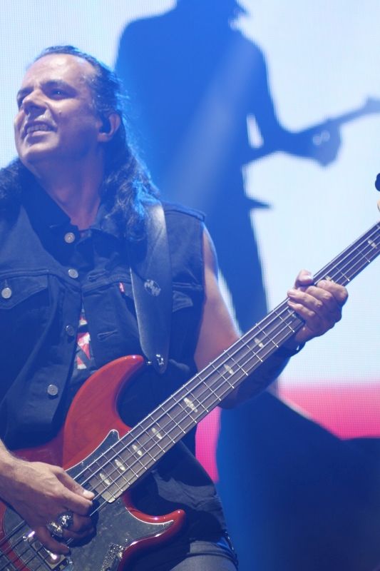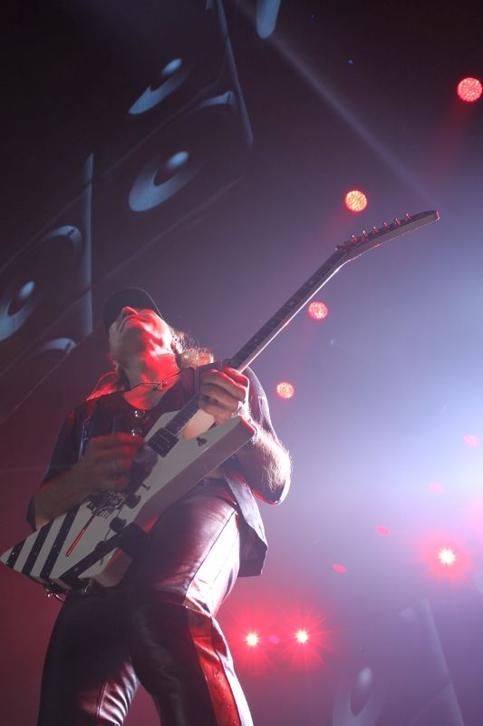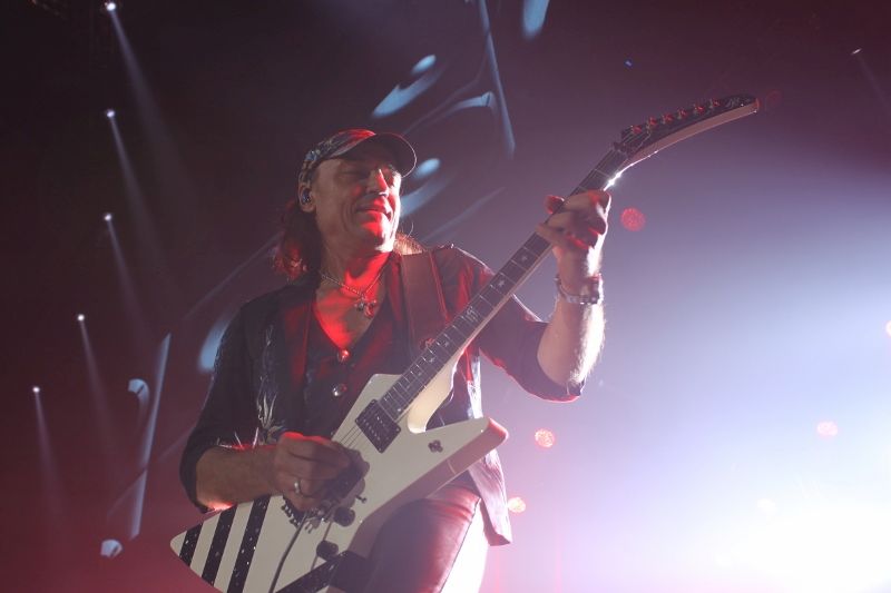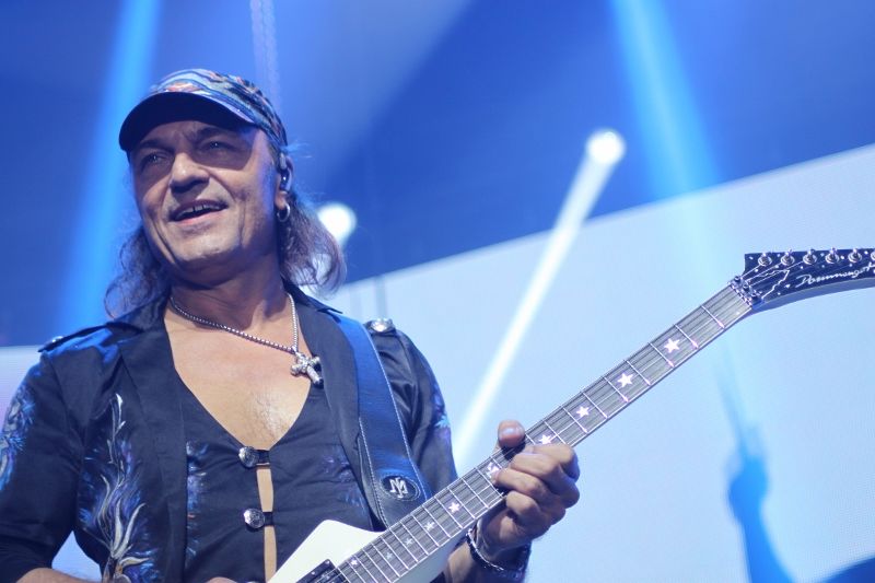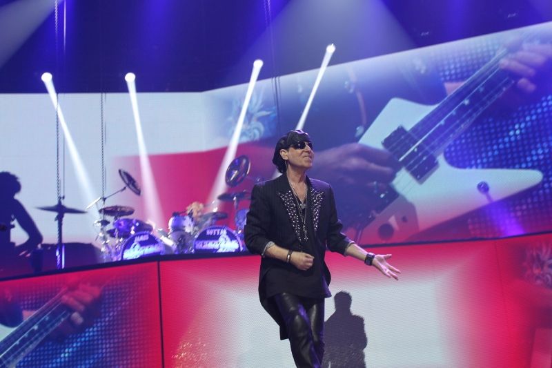 Tegoroczny koncert Scorpionsów był moim piątym spotkaniem z ich muzyką na żywo, ale tak dobrze nie było jeszcze nigdy. Niezwykła oprawa wizualna (trzy gigantyczne ekrany), doskonała forma muzyczna i wokalna złożyły się na niezwykły występ. Całe show rozpoczęło się niewiele po 20:30, gdy na telebimach pojawiły się pierwsze wizualizacje, a chwilę później z głośników popłynęły dźwięki „Going Out with a Bang”. Pierwsze kilkanaście minut koncertu było dobrym przywitaniem muzyków z fanami, a czepiać można się jedynie setlisty – ani openerowy numer z nowej płyty, ani kolejne klasyki („Make It Real” i bujający „Is There Anybody Out There?”) nie są numerami porywającymi. Na szczęście już zagrany jako czwarty soczysty „The Zoo” i wjeżdżający chwilę później gitarowy „Coast to Coast” nie pozostawiały wątpliwości, że tego dnia będzie co najmniej bardzo dobrze. Ściana dźwięku i potężne riffy wgniatały w ziemię, a rozpędzone i perfekcyjne solówki sprawiały, że ręce same składały się do braw. Do tego Panowie zdecydowanie się nie oszczędzali – Rudolf i Matthias raz po raz przebiegali po obszernej scenie, a Klaus prezentował bardzo solidną formę wokalną. Pozazdrościć energii i radości z grania. Po pierwszych kilku utworach muzycy pozwolili sobie na retrospekcję sięgając po wiązankę numerów z lat 70. (między innymi „Speedy’s Coming” i „Catch Your Train”). Chwilę później zaprezentowali stadionowy singiel „We Built This House”, a Matthias zaczarował hipnotyzującą solówką w „Delicate Dance”.